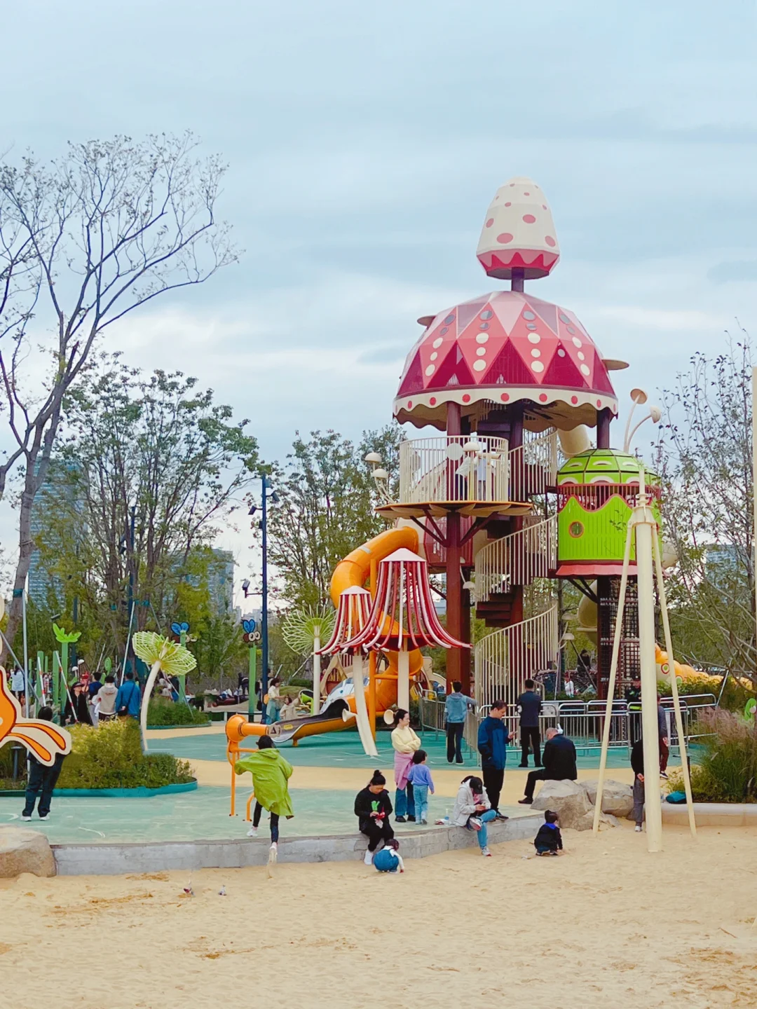 8700平的老牌无动力儿童乐园,拥有超多条滑梯,大致分成4块区域,大大分散了人流。公园内还有和平鸽🕊️投喂、24h🈺️业书店等
