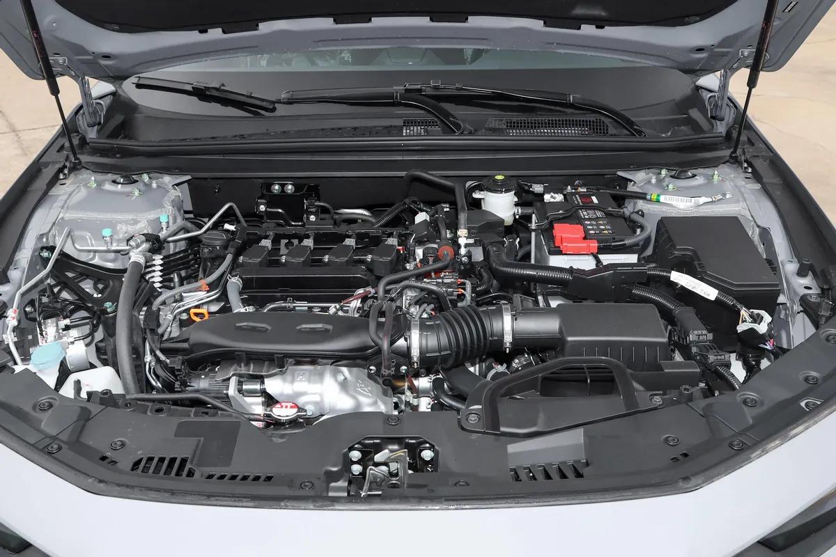安顿好家人,车子驶入了通往郊区的公路,咱们这回开的是燃油版,搭载1.5T涡轮增压发动机,功率141kW(192Ps),峰值扭矩260N·m。数据看着漂亮,实际开起来更带劲,试驾时,起步阶段,CVT无级变速箱把动力梳理得非常平顺,没有丝毫的顿挫感,这对于容易晕车的小朋友来说太友好了。深踩油门,动力响应积极,高速超车时只要给油,速度立马提上来,那种从容感让我对本田的“买发动机送车”这句戏言有了更深的体会。但英仕派更让我惊喜的,其实是底盘和操控,前麦弗逊+后多连杆的独立悬挂组合,调校很有功力。它既不是那种软绵绵像开船一样的舒适,也不是硬邦邦让人难受的运动,而是找到了一个很好的平衡点。过减速带或者坑洼路面时,震动过滤得很干脆,细碎的颠簸基本传不到车内。俩孩子在后排睡得香甜,完全不受路况影响。方向盘的手感轻盈精准,小转弯半径只有5.75m,这在城市里掉头、停车简直太方便了。宽胎和大轮毂的配置,让车辆在过弯时侧倾很小,底盘很扎实,给人很强的信心。开着它在山路上转几个弯,那种人车合一的感觉,真带劲真满足。而WLTC综合油耗6.71L/100km,喝92号汽油,这让我这个精打细算的“家庭煮夫”非常满意,省下的油钱,足够带一家人去吃几顿好的,想想都很开心。