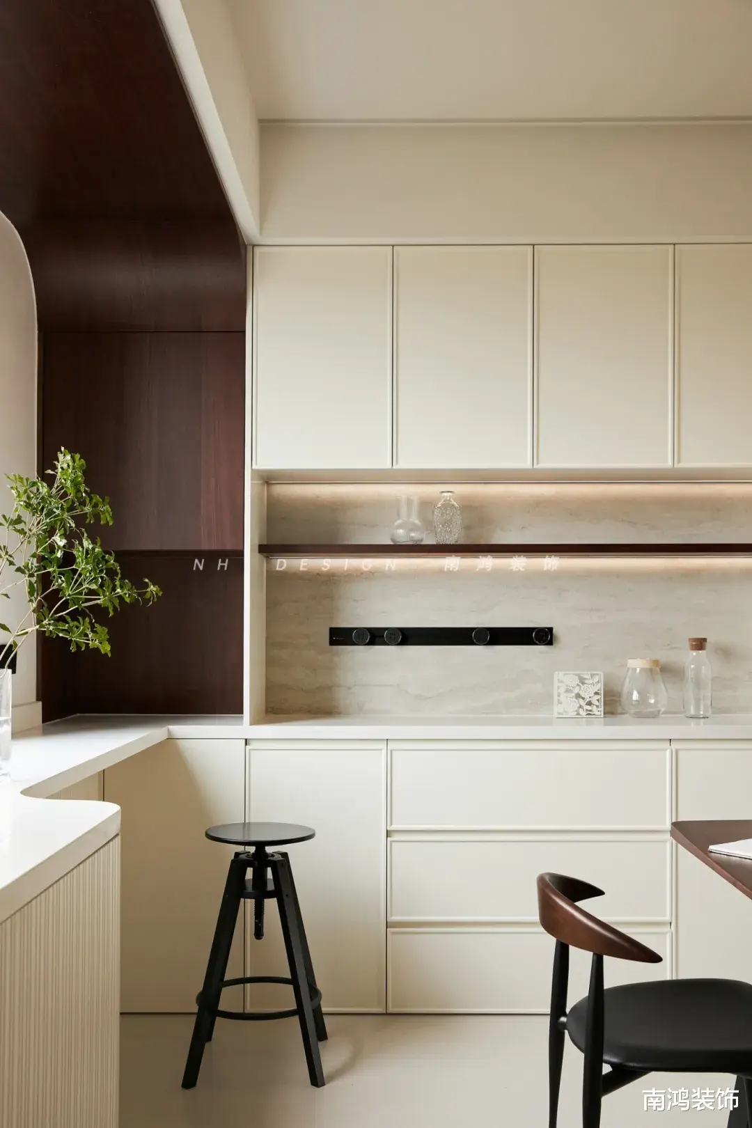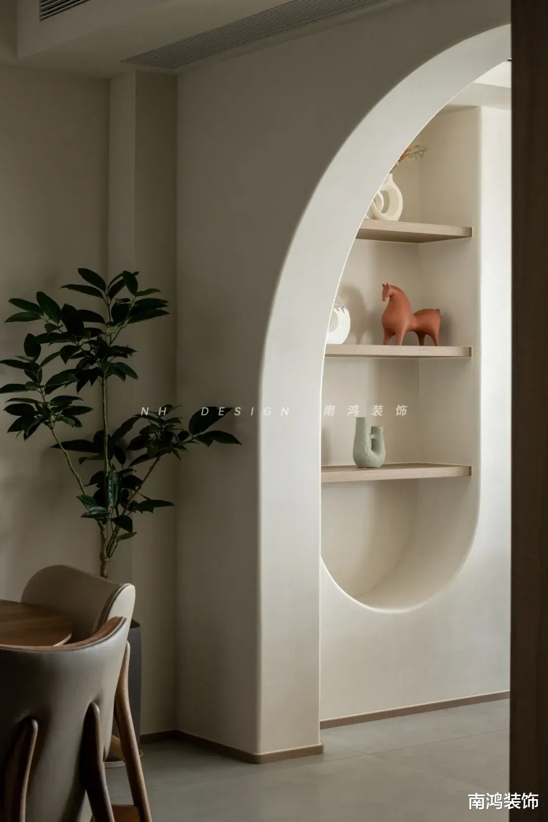 如果想要让空间气质更加柔和,不妨尝试优雅的圆弧造型吧。无论是柜子门板、柜体转角或是开放架弧度,都能为空间注入更多的温润与灵动。