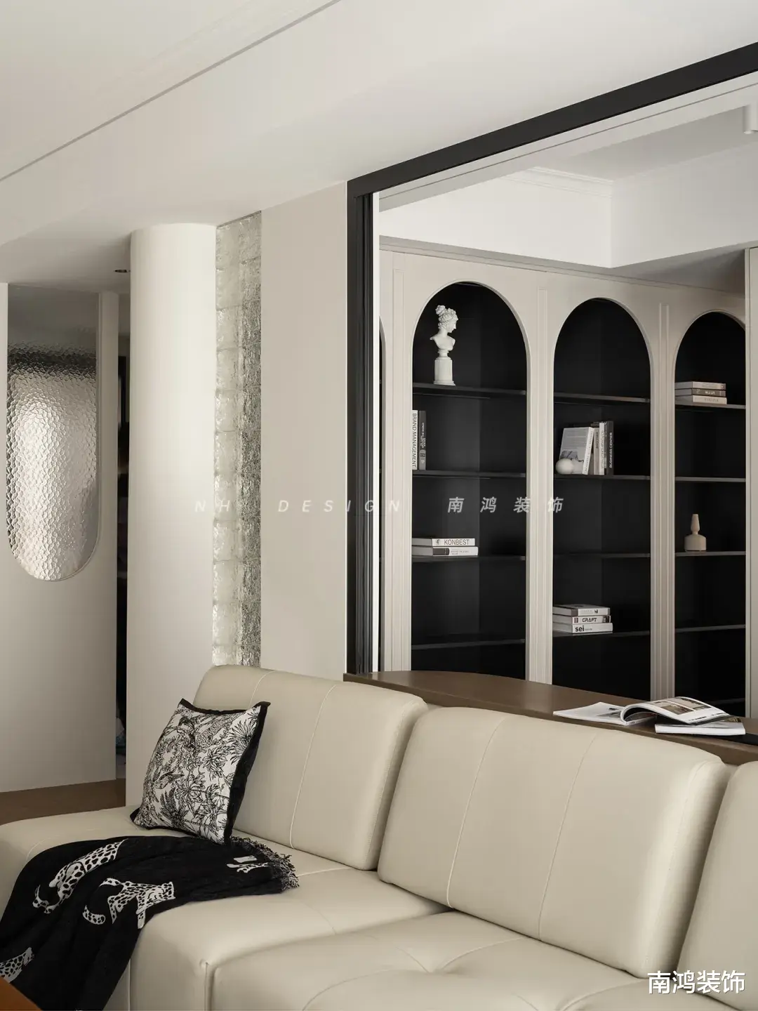 搭配使用组合、穿插、镂空、悬浮等多种设计手法,可以进一步帮助空间化解沉闷,提升高级感与艺术气质。