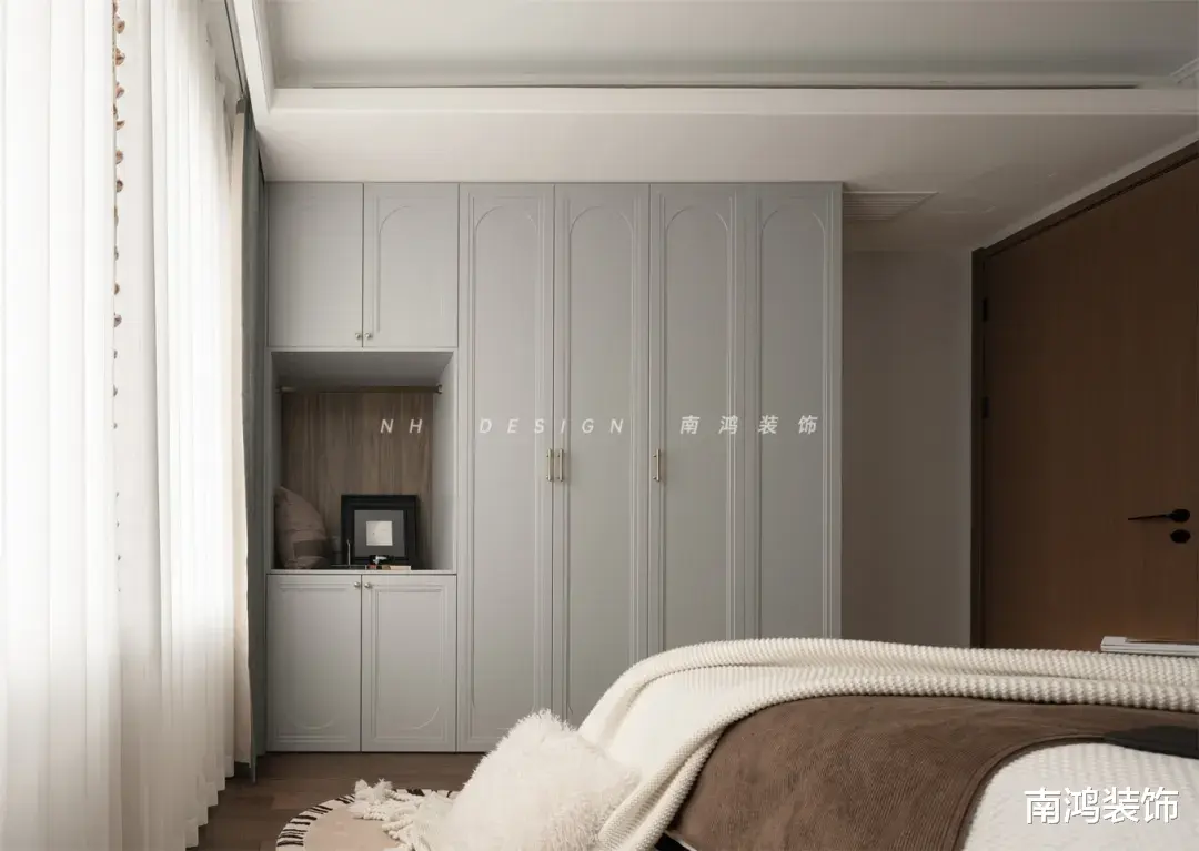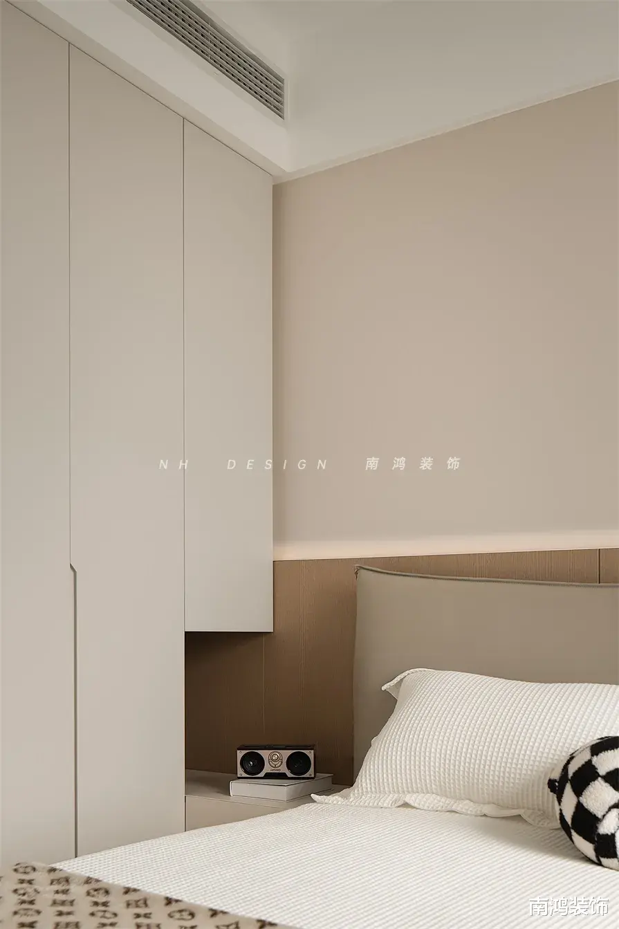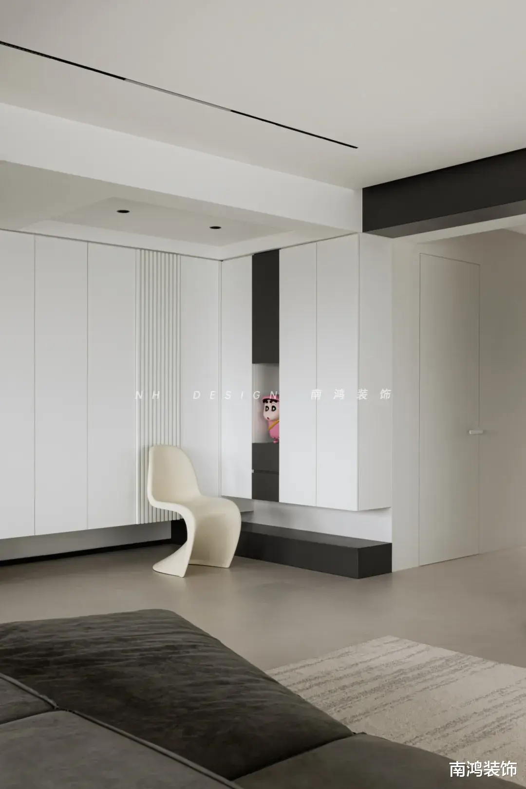 柜体造型是影响收纳区整体观感的关键。我们可以通过骨骼线、模压门板线条来增强立面的层次,营造简洁而富有秩序的美。