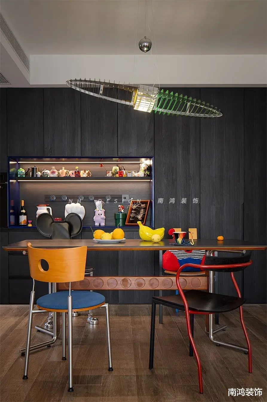 如果是追求复古格调的家,则可以尝试用深胡桃木色、墨绿、炭黑等沉稳色系,为空间注入比较浓厚的叙事感。