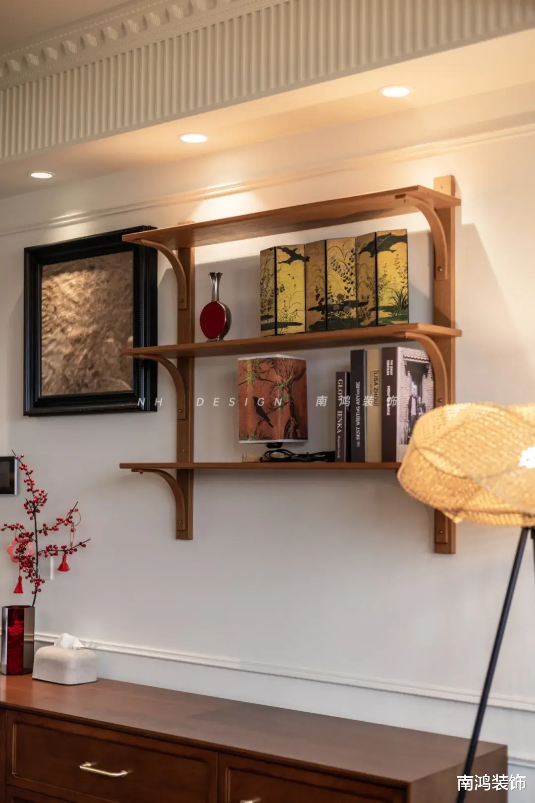 想避免满墙单调的封闭柜体,我们可采用“藏八露二”的设计原则,设置部分开放层架或展示区,这样既能隐藏杂物,维持空间整洁,又不影响装饰品的展示。