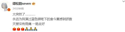感谢为我们带来这么好的锦衣之下, 愿天堂没有病痛 ,蓝色狮老师一路走好。#谭松韵任嘉伦悼念锦衣之下作者#