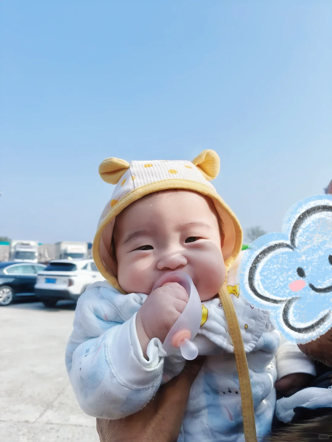 在高速🛣停车🅿区休息了几次!不睡觉觉的时候,嘴也不能闲着,给带牙胶,不仅能给进入陌生环境的娃娃以安抚,还顺便磨一下要出头的小牙齿!