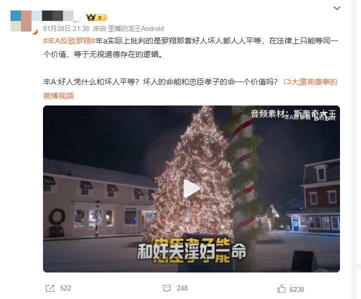 现在“牢A驳斥罗翔”这个话题火了,网友们吵得不可开交。