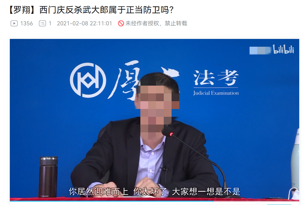 不过公子没找到罗翔说这话的出处,只知道他认同程序正义要优于实体正义,还聊到西门庆反杀武大郎不算正当防卫。因为西门庆勾搭人家老婆有错在先,不先跑路还反杀太嚣张!