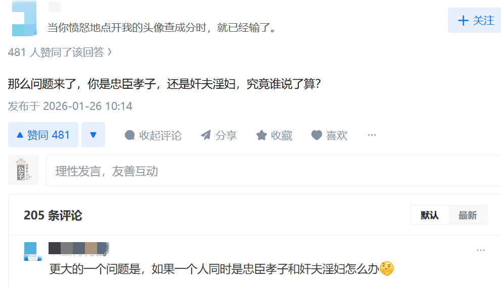 “忠臣孝子的命,比奸夫淫妇的命更宝贵!”最近牢A的这句话火了,不知道你怎么看,认不认可?
