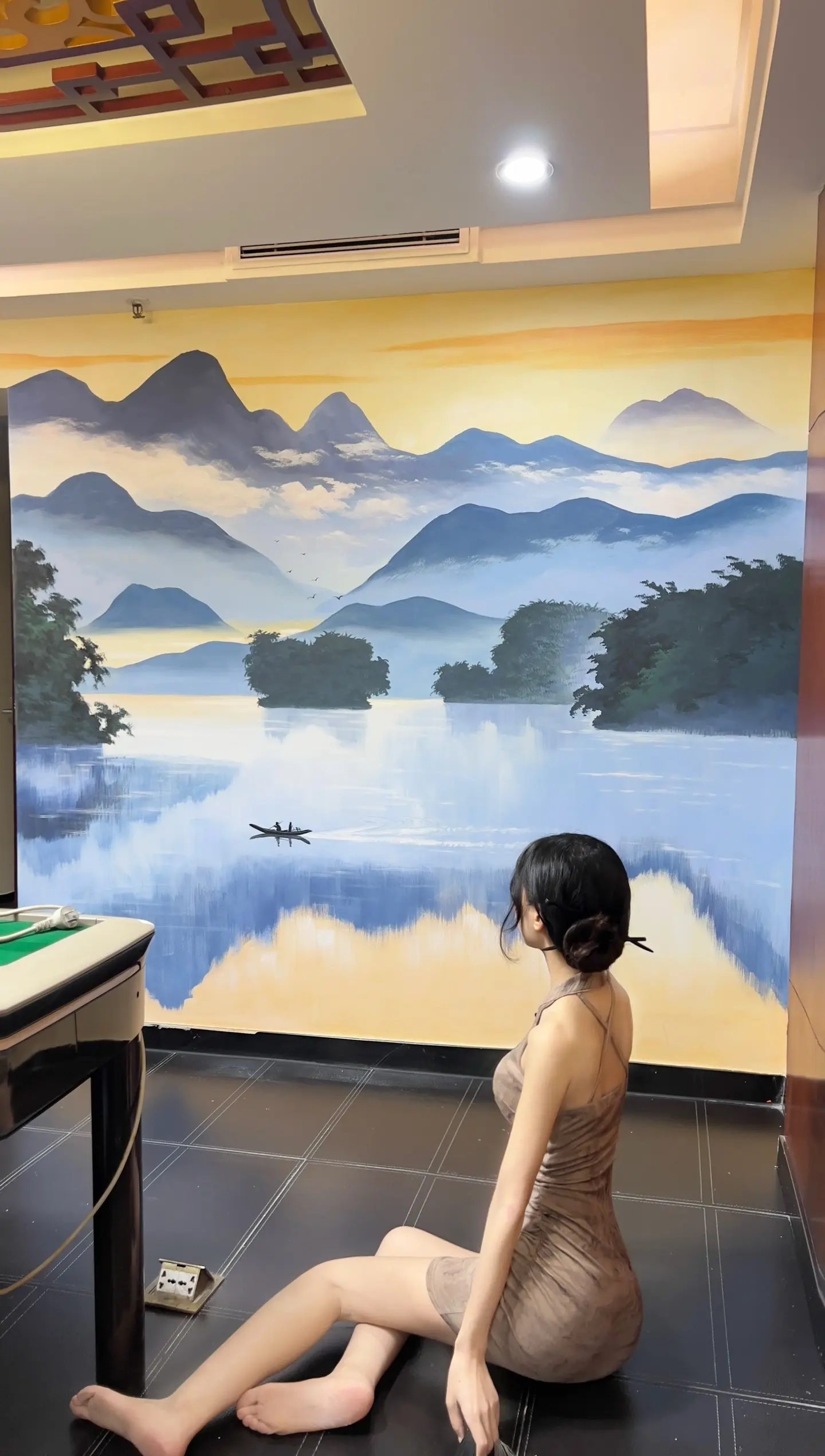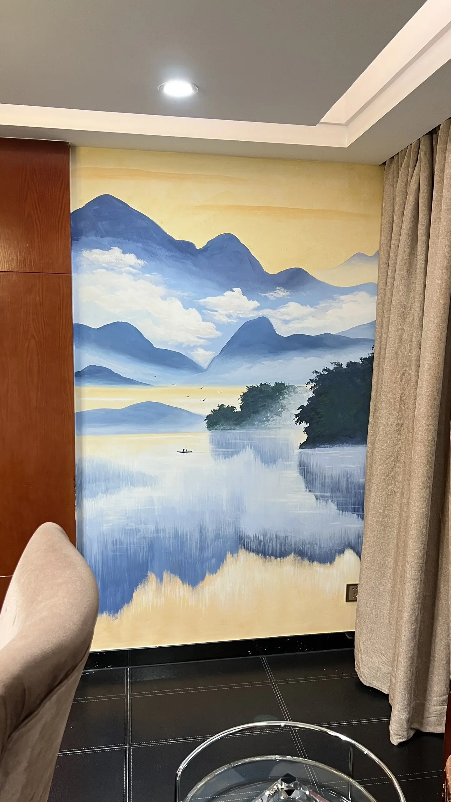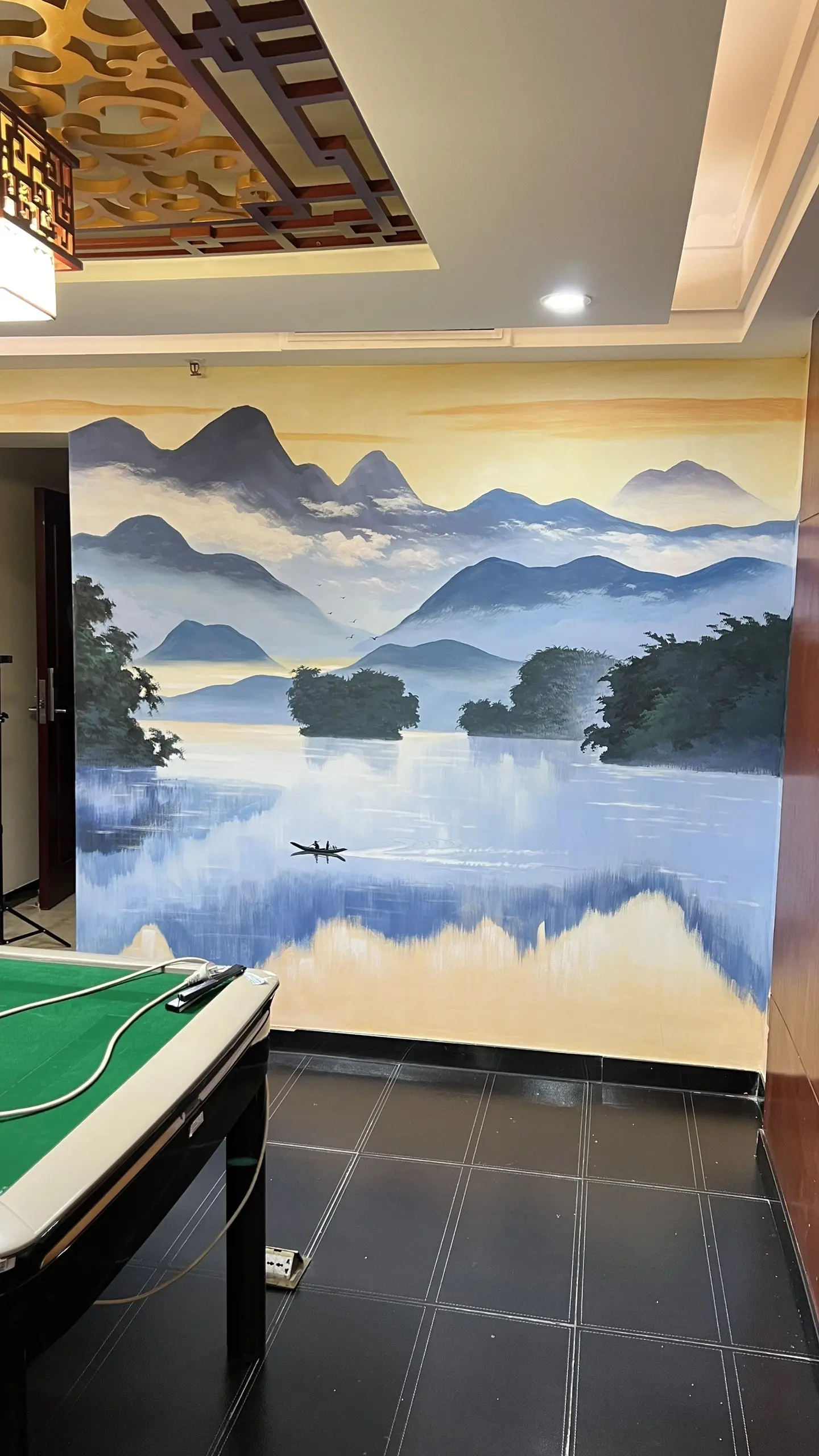 今天画一幅新中式山水水墨画,清新淡雅简洁🎨旗袍深圳墙绘深圳浮雕壁画广东墙绘浮雕壁画广东深圳壁画师