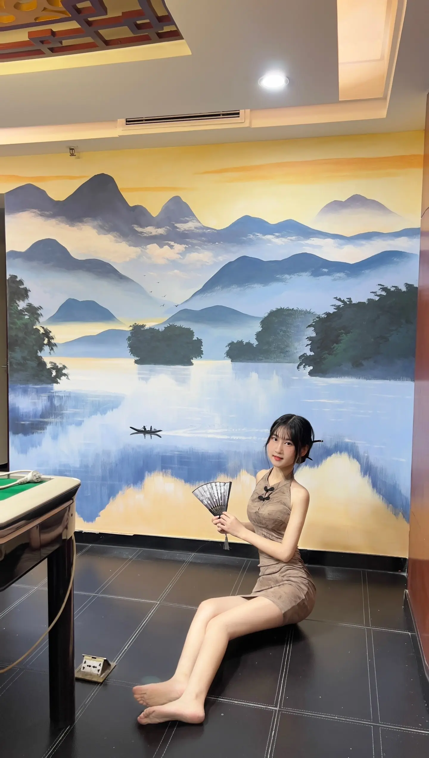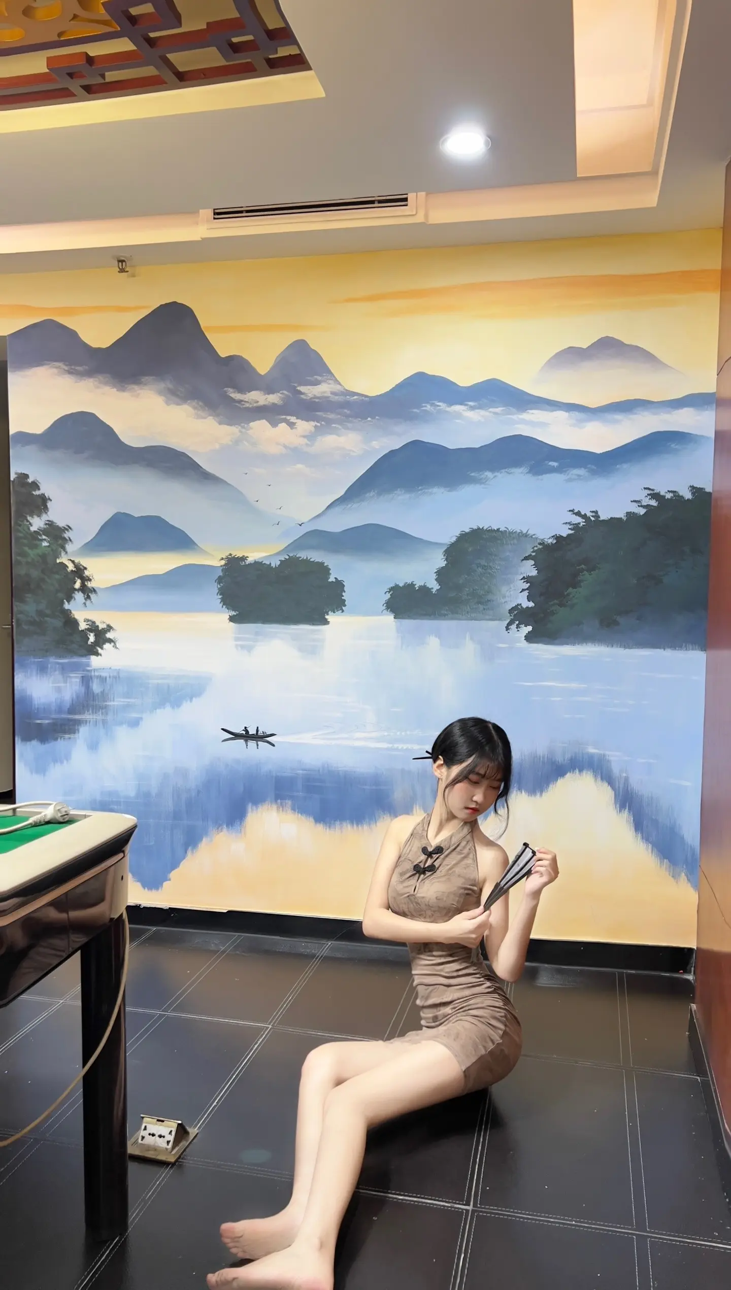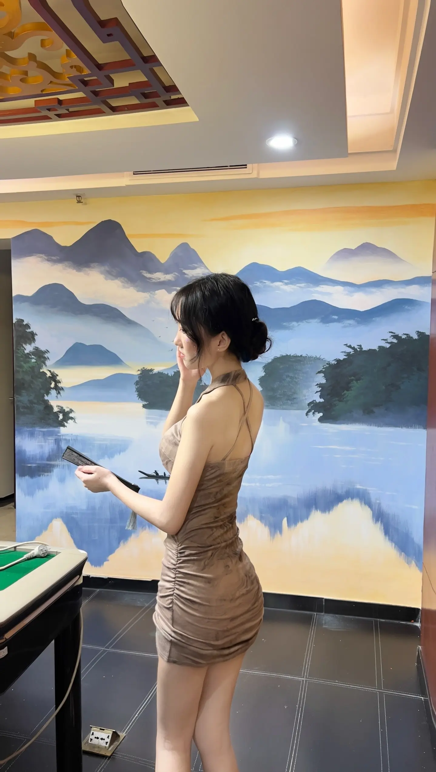 今天画一幅新中式山水水墨画,清新淡雅简洁🎨旗袍深圳墙绘深圳浮雕壁画广东墙绘浮雕壁画广东深圳壁画师