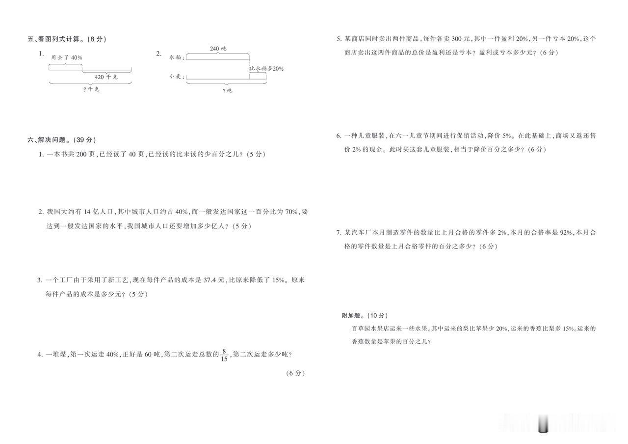 2024秋人教版数学六年级上册第六单元达标综合练习