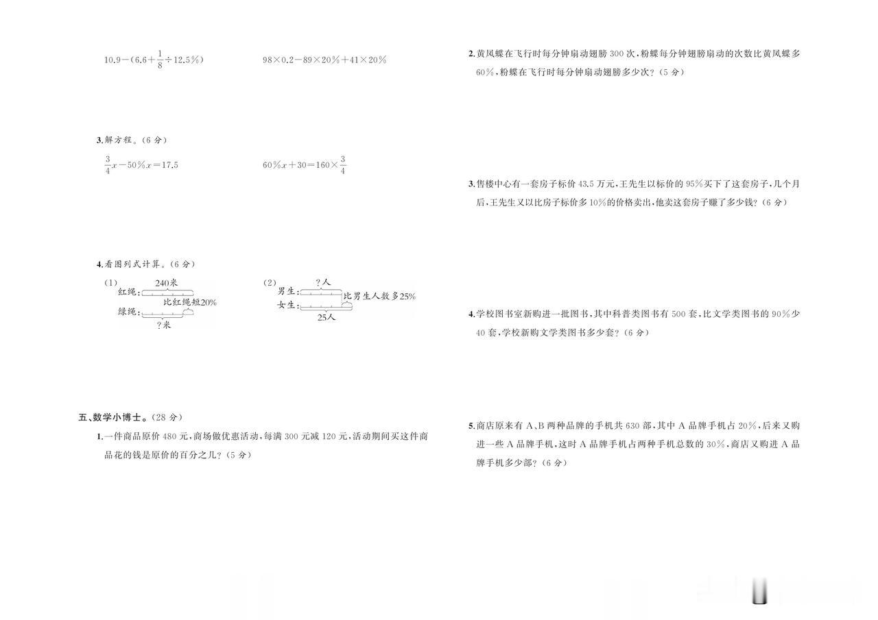 2024秋人教版数学六年级上册第六单元达标练习题