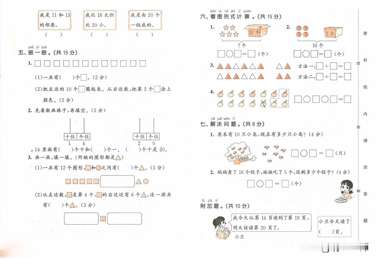 2024秋最新人教版数学一年级上册第四单元达标练习题