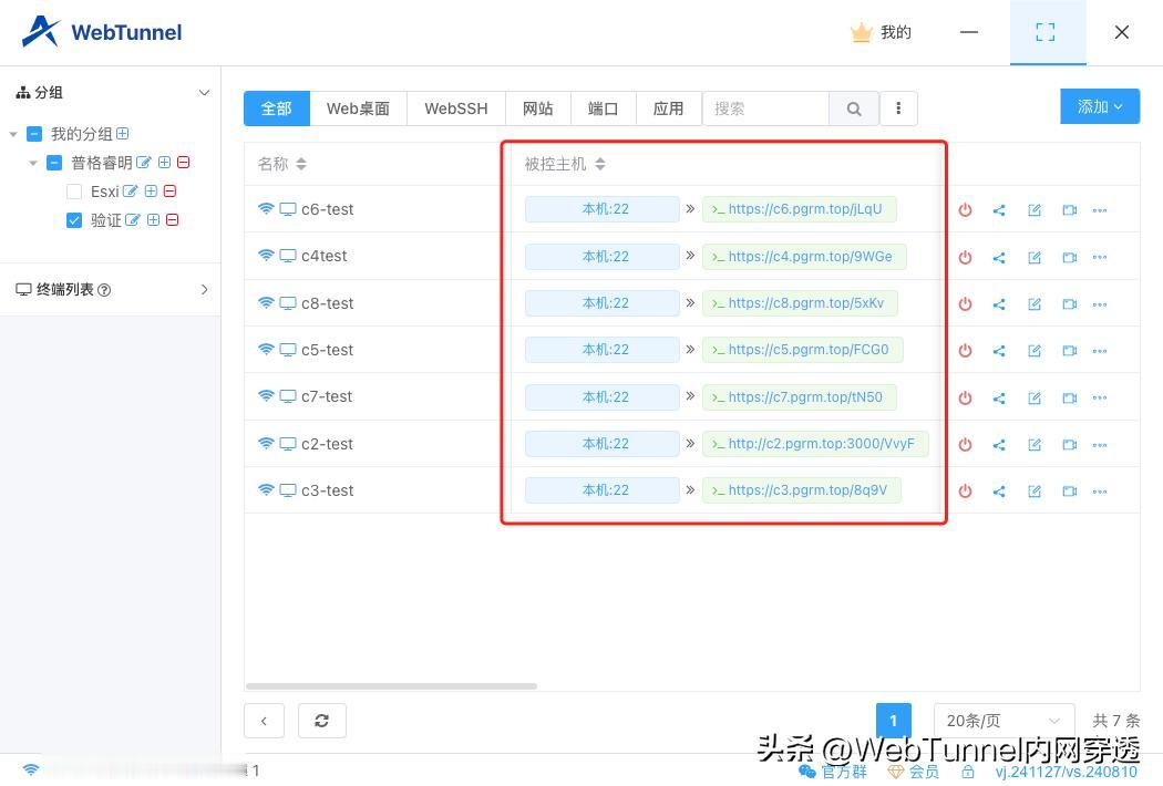 WebTunnel 8 个高速代理通道上线啦,喊你来体验![撒花] 家人们,WebTunnel 上线了 8 个高速通道,并支持在创建时选择使用哪个通道,如果不选择则系统随机分配。 此 8 个通道对应的域名分为为:c1.pgrm.top~c8.pgrm.top。 大家可以尝试把映射新建在其他通道上,速度会有进一步的提升[奸笑] 重要的事情说三遍: 所有高速通道免费,并且不限速。 所有高速通道免费,并且不限速。 所有高速通道免费,并且不限速。 客户端无需更新,刷新或重新打开即可更新到最新版。 快去试试喔~