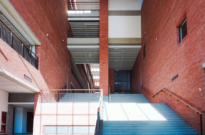 规整的几何线条、厚重的红砖外墙,契合着北邮沉稳的治学风格;而弧形礼堂的开放空间、阶梯中庭的连桥设计,又为学生提供了灵活的交流场所,夜晚亮起的灯光墙,更是成了自习学子的“治愈角落”。目前正在加紧建设的科研楼、学院楼和学生宿舍,同样延续了“以学生为中心”的理念,未来这里将成为北邮学科发展的新引擎,也会成为新一代学子的梦想起点。