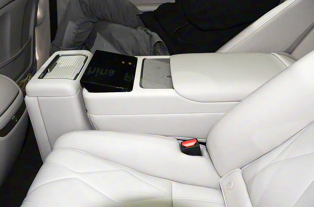 新车的后排座椅使用了2+1式的结构,其中中间座椅坐垫可以向前掀起,靠背翻折之后形成宽度的扶手,并且还提供了一块显示屏。
