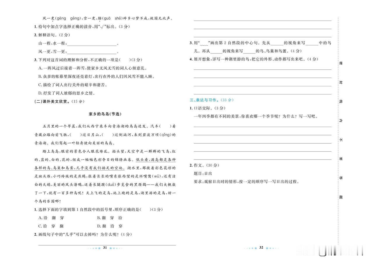 2024秋统编版语文五年级上册第七单元达标检测卷