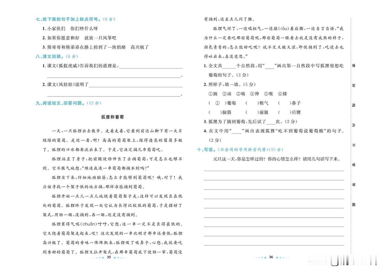 2024秋统编版语文二年级上册第八单元达标检测卷
