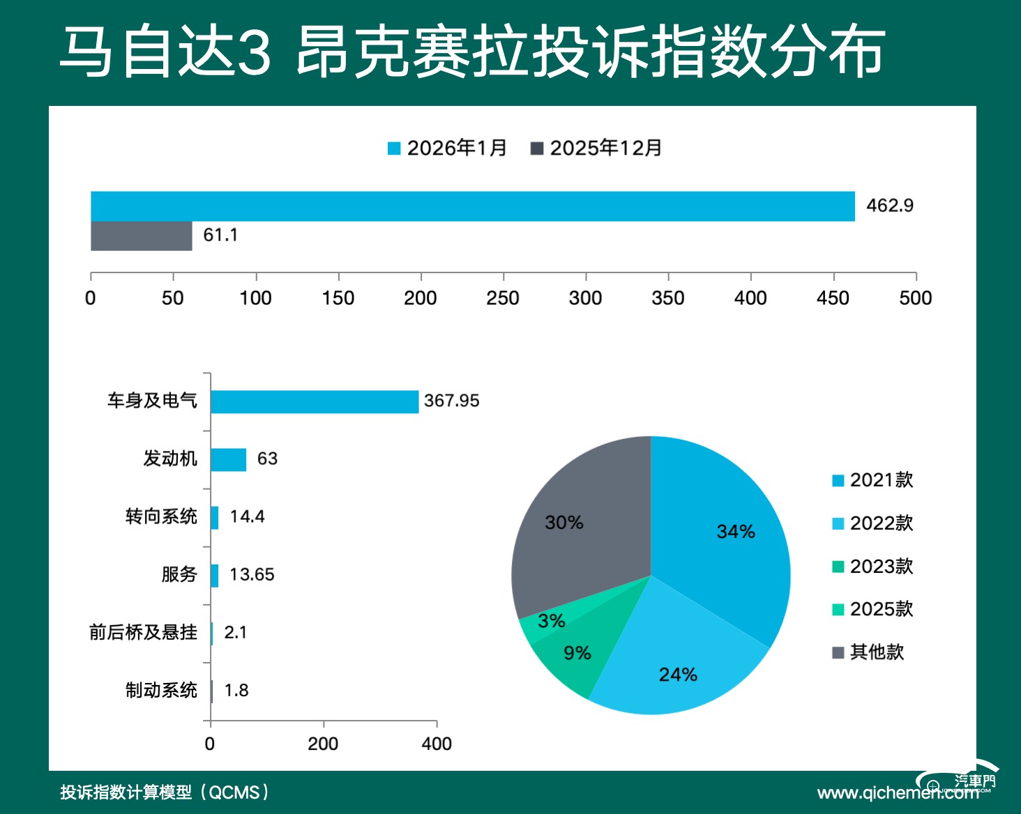 第三名:马自达3 昂克赛拉 投诉指数462.9