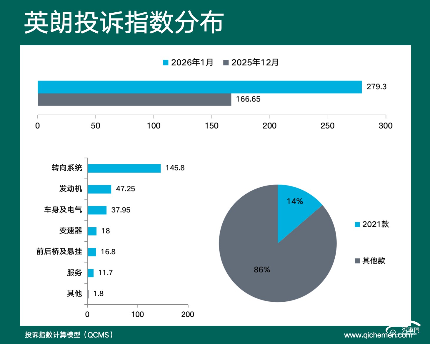 汽车质量投诉点评:本月英朗投诉指数在短暂回撤后再次爆发,环比上涨67.6%,转向卡滞异响仍是车主投诉的焦点,该问题因集中出现在2016款~2019款车型上,因车型较老早已出保且厂商曾进行过召回,致使问题哪怕没有彻底解决也维权艰难。而且转向卡滞异响问题在上汽通用多款车型上均存在,已经成为多款车型的通病。
