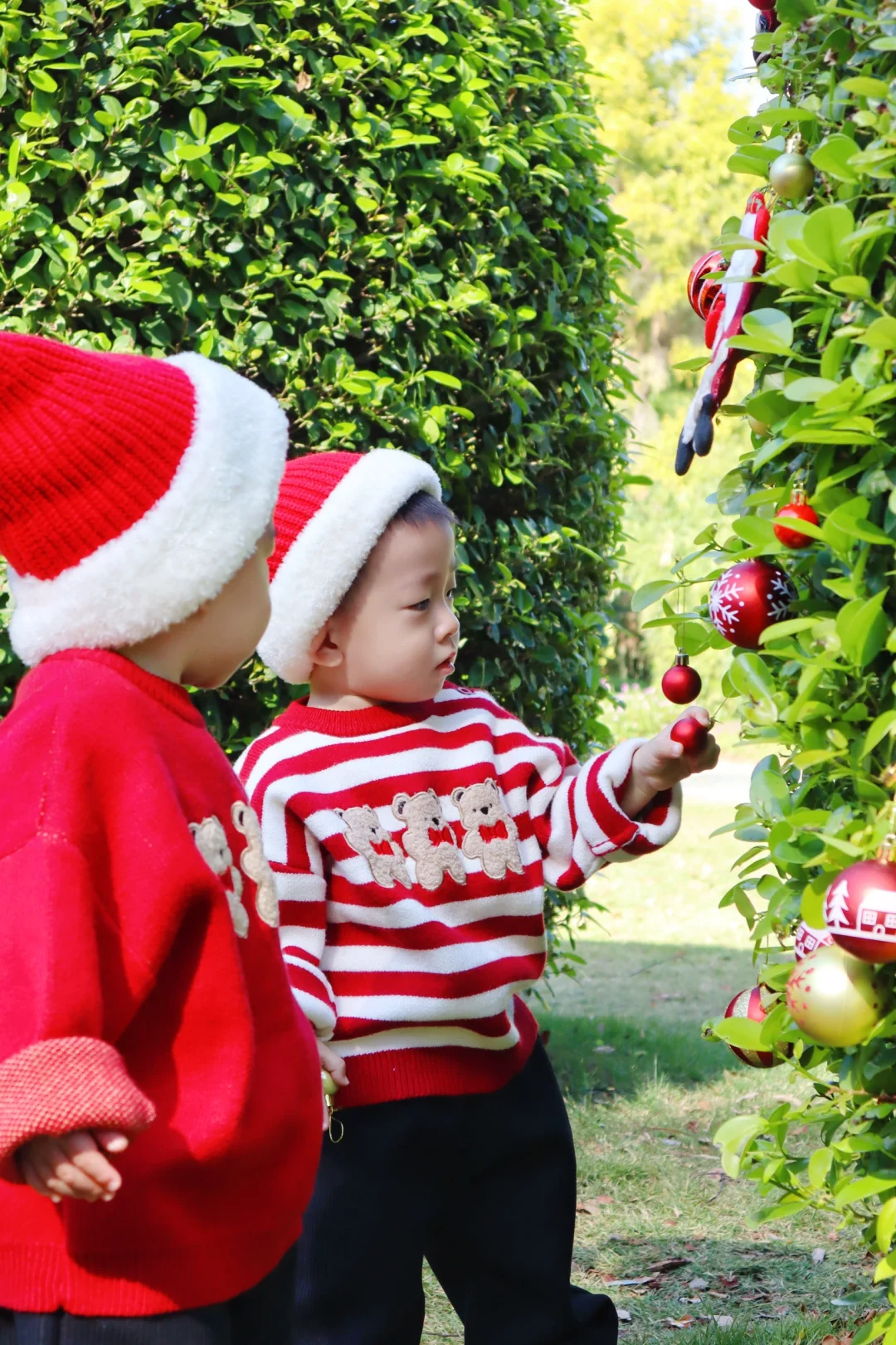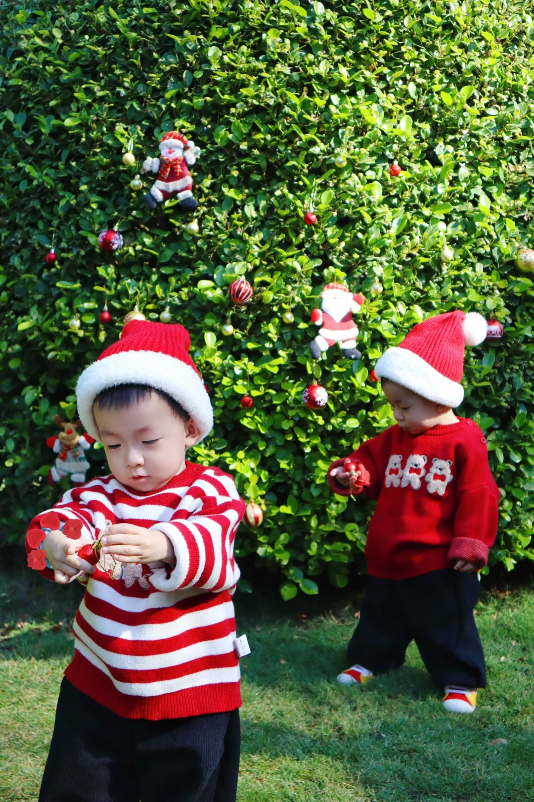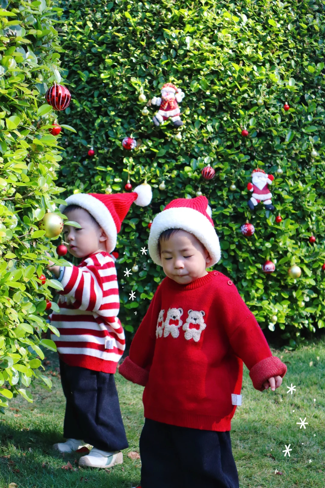 马上进入圣诞月🎄❄️ 给我的宝宝们准备了小道具 拍一组低成本圣诞照 首先,肯定需要红色的圣诞帽啦~ 圣诞树🌲可以直接在公园找颗矮树当背景 挂上提前准备好的圣诞球球 然后就可以开拍了 两个宝宝真的很难控制 只能抓拍📸后再慢慢挑选