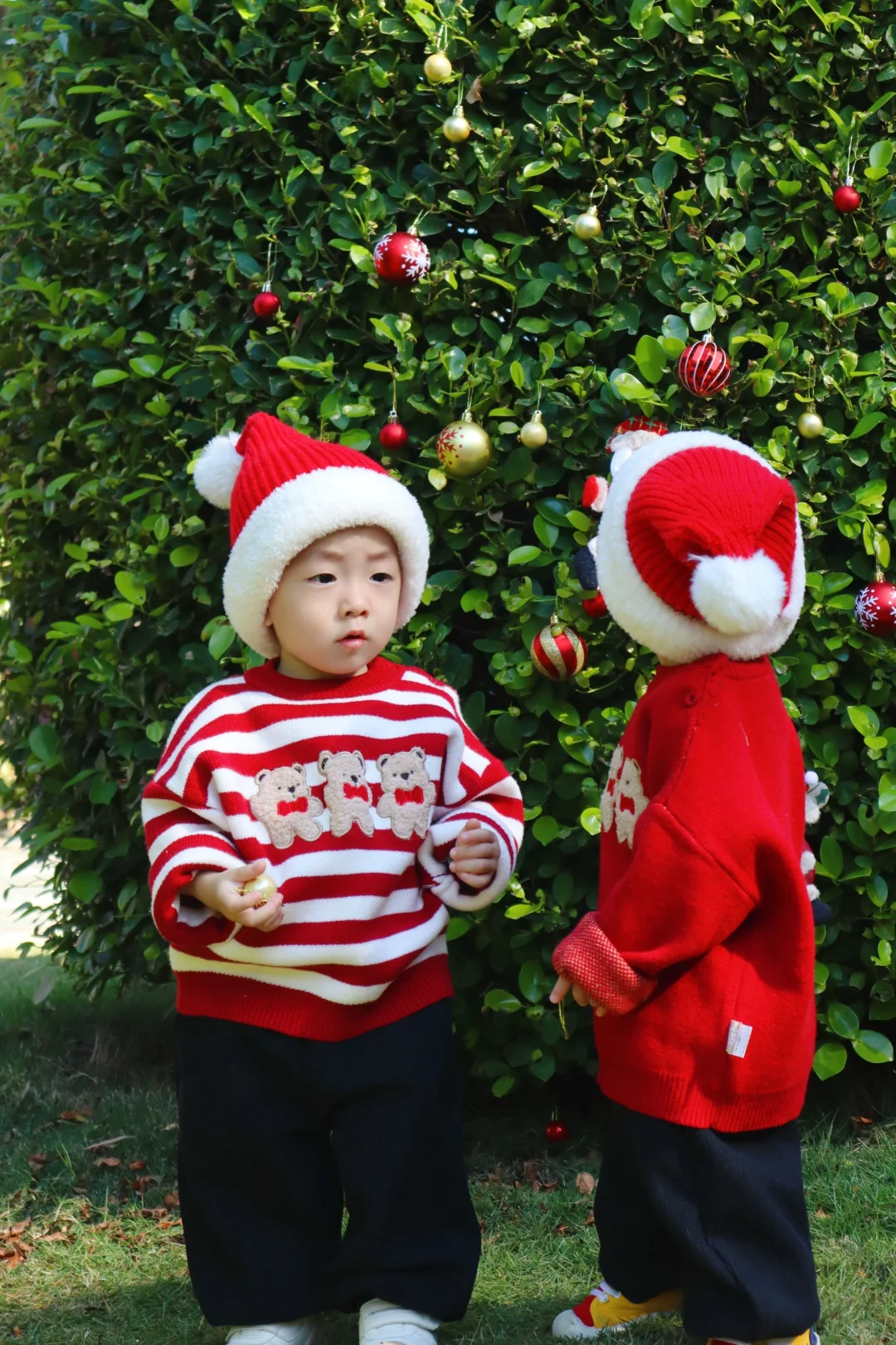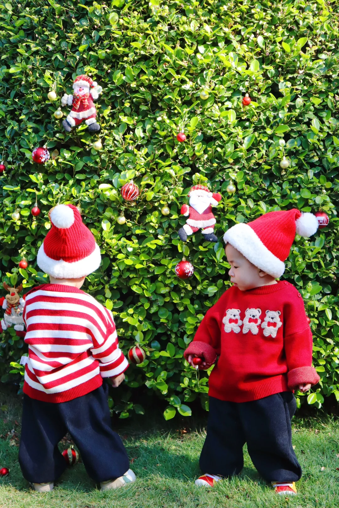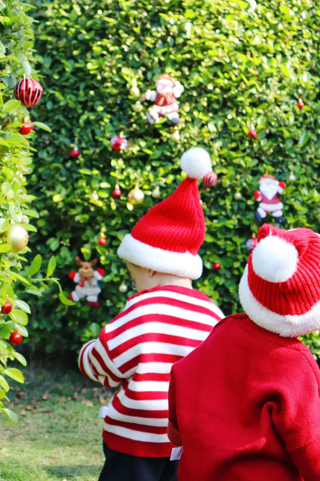 马上进入圣诞月🎄❄️ 给我的宝宝们准备了小道具 拍一组低成本圣诞照 首先,肯定需要红色的圣诞帽啦~ 圣诞树🌲可以直接在公园找颗矮树当背景 挂上提前准备好的圣诞球球 然后就可以开拍了 两个宝宝真的很难控制 只能抓拍📸后再慢慢挑选