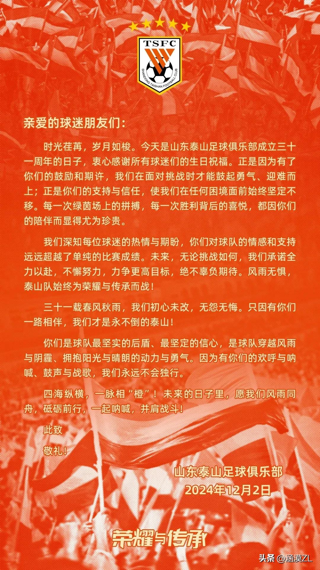 31年!山东泰山离建设百年俱乐部的目标又近一步! 31年,山东泰山经历过1999、2021年两次双冠王的辉煌,也经历了2016年的惊险保级! 31年!山东泰山5次问鼎中国足球顶级联赛,8次勇夺中国足协杯冠军,国内赛场无人能敌。 31年!鲁能青训为中国足球培养出了不计其数的足球人才。