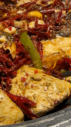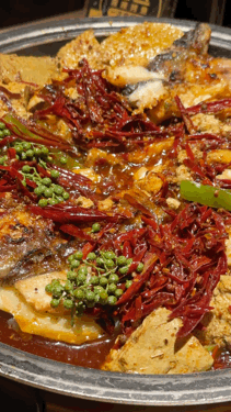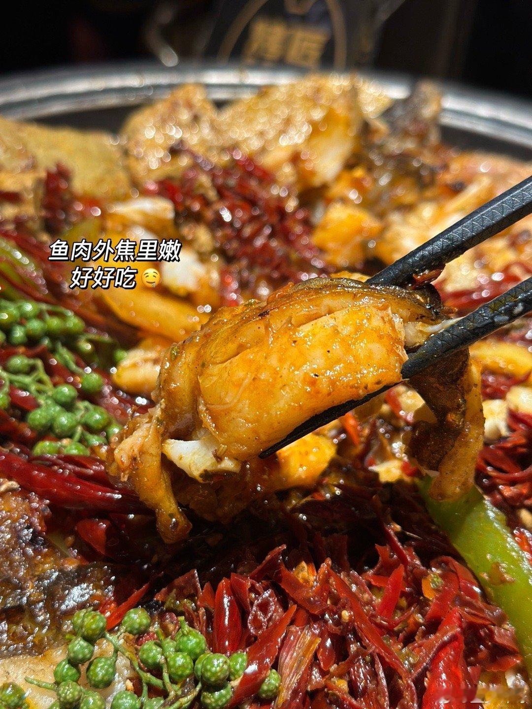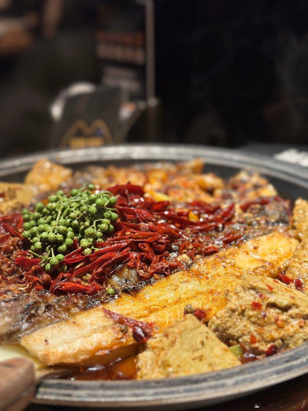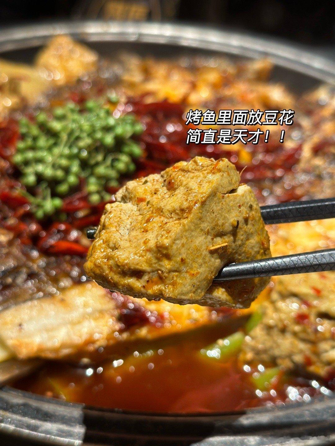 [馋嘴]速速点了经典麻辣烤鱼,热辣红油,香味直直往鼻子里钻~[憧憬]鱼被烤的焦香酥脆,里面的豆花越煮越入味,超级嫩滑!我还额外加了折耳根,煮过的折耳根是软糯的口感,我超爱!!