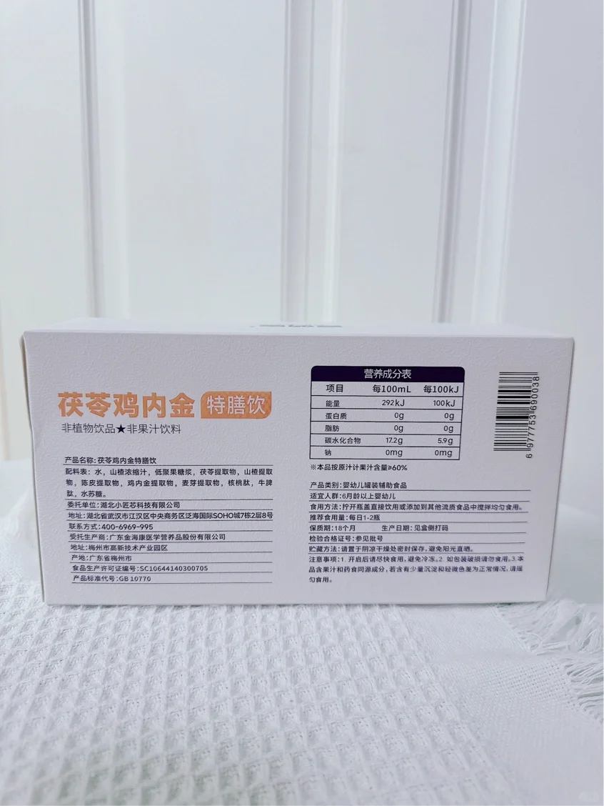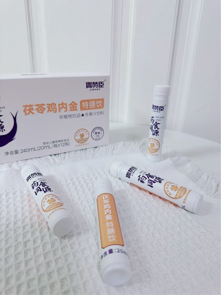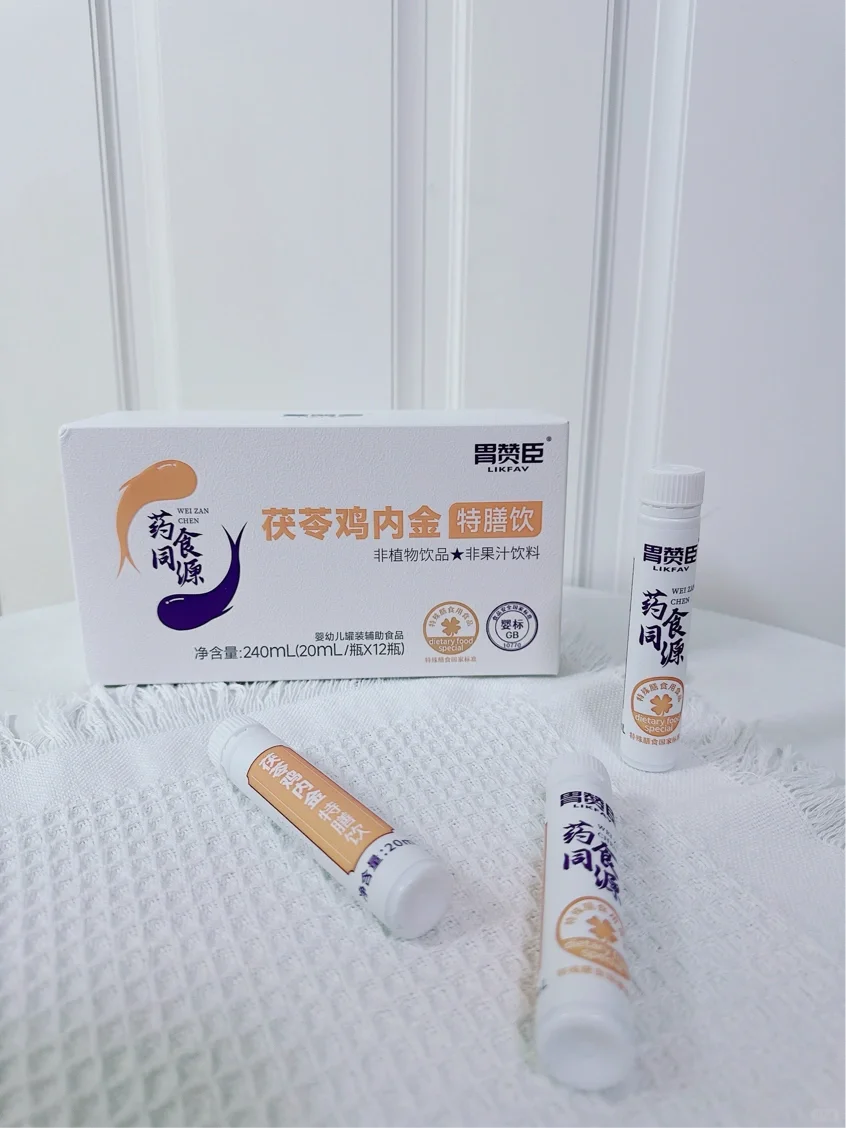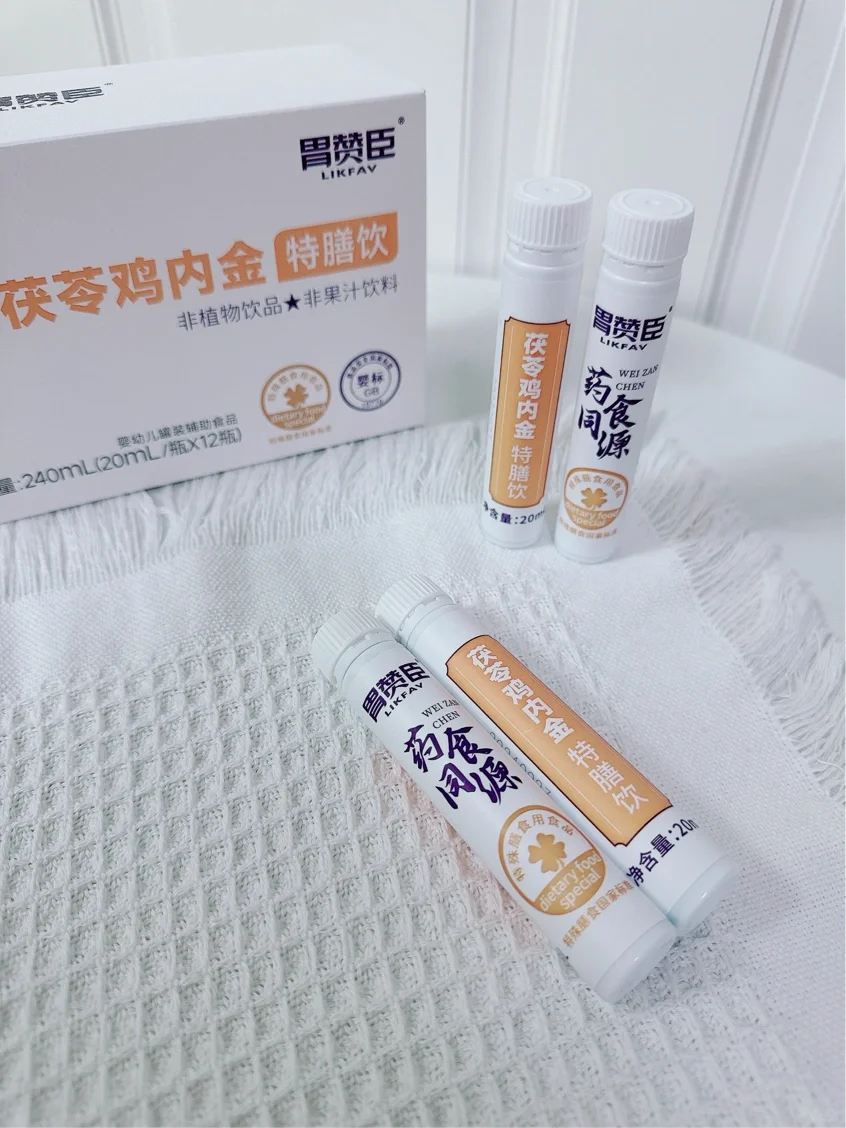 胃赞臣茯苓鸡内金特膳饮有多种药食同源提取物比如茯苓、鸡内金、水苏糖+牛脾肽、陈皮等等,不是植物饮品,也不是果汁饮料