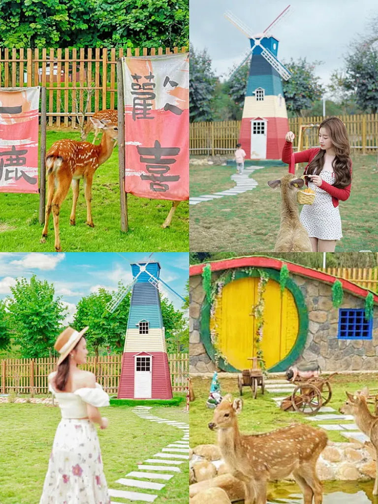 🦌鹿境庄园,庄园霍比特小屋的大草坪有一群小鹿,可喂养,可近距离接触小鹿,还可以和它们互动拍照哦