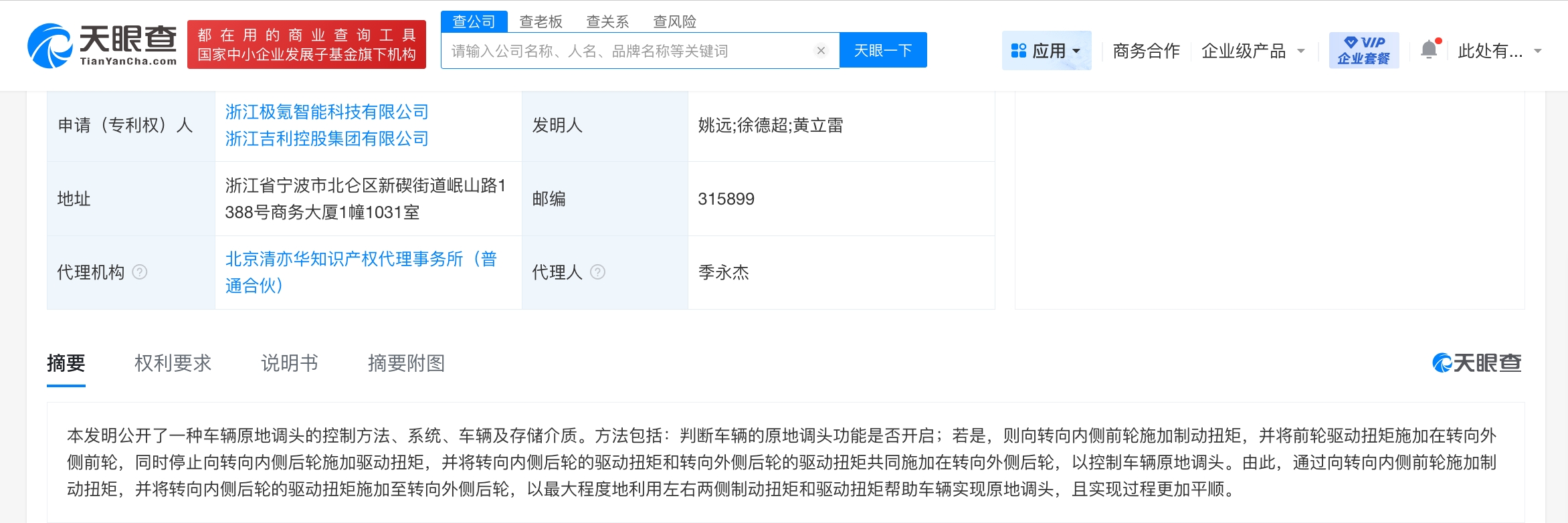 天眼查知识产权信息显示,近日,浙江极氪智能科技有限公司、浙江吉利控股集团有限公申请的“车辆原地调头的控制方法、系统、车辆及存储介质”专利获授权。