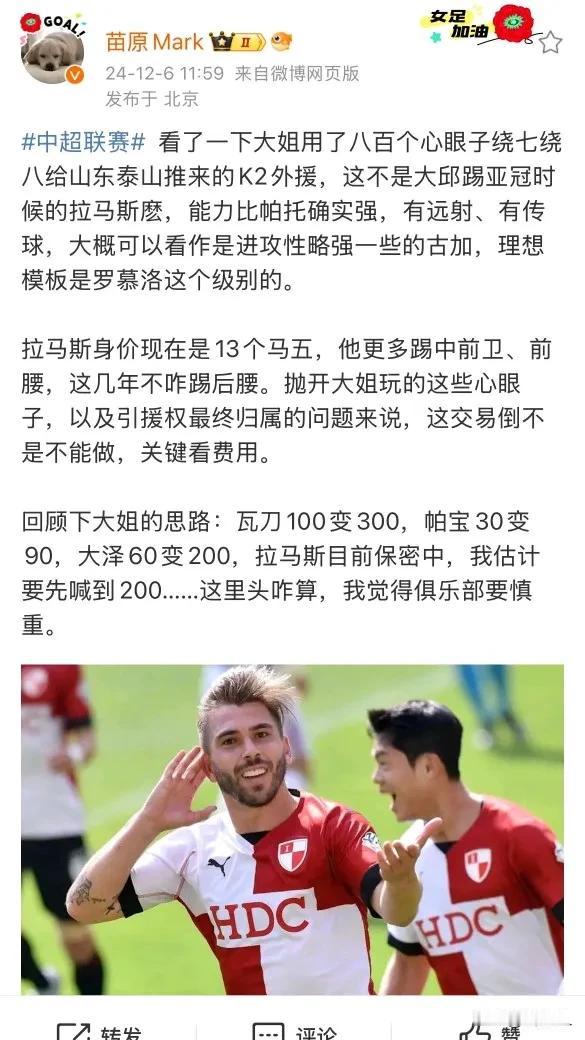 继续让崔康熙再嚯嚯泰山队一年?即使成绩再差并且多次创造耻辱输球记录也不主动辞职,而所谓的经纪人大姐继续向泰山队推荐外援,来自K2联赛的拉马斯。 当初管理层中邪了?和崔康熙签的什么合同?就凭以本赛季中途以身体原因为由请假,以及多次和裁判发生冲突影响球队比赛进程就完全可以辞退他。