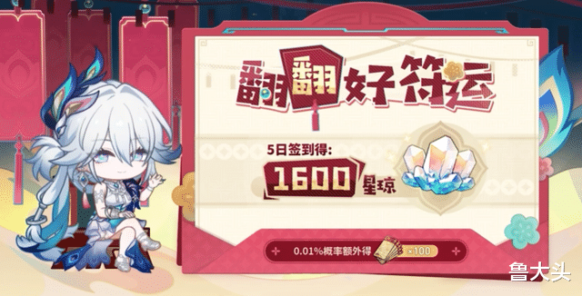 4.0版本上线后,还有“翻翻好符运”活动上线,活动期间玩家每天登录可翻开一张爻光送的吉签,签到5日共计可获得1600星琼。如果玩家足够幸运,还能通过0.01%的概率额外获得100抽,看来见证大家欧皇血统的时刻到了!