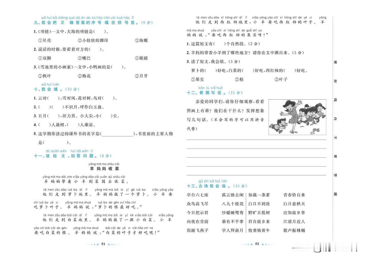 2024秋统编版语文一年级上册期末真题测试卷(四)