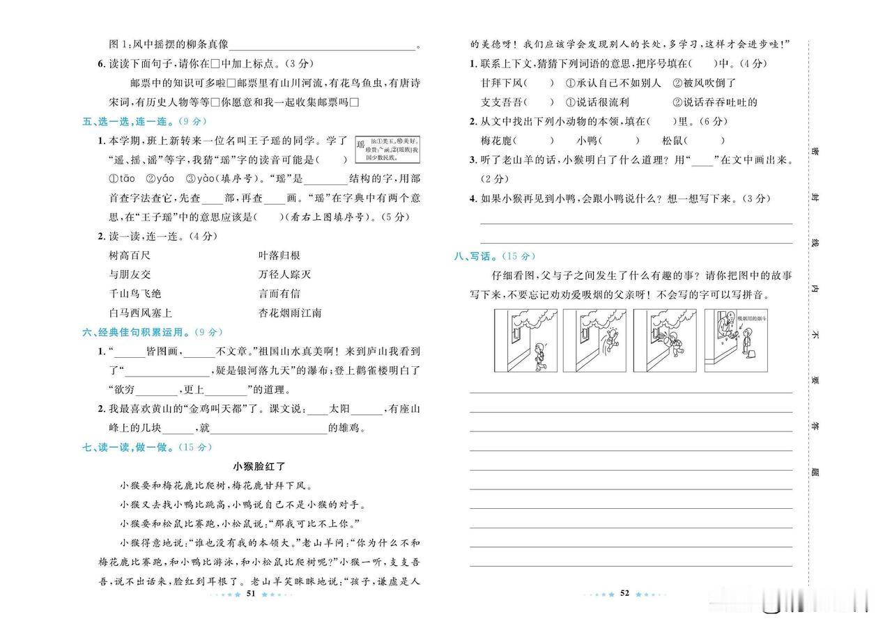 2024秋统编版语文二年级上册期末真题测试卷(三)