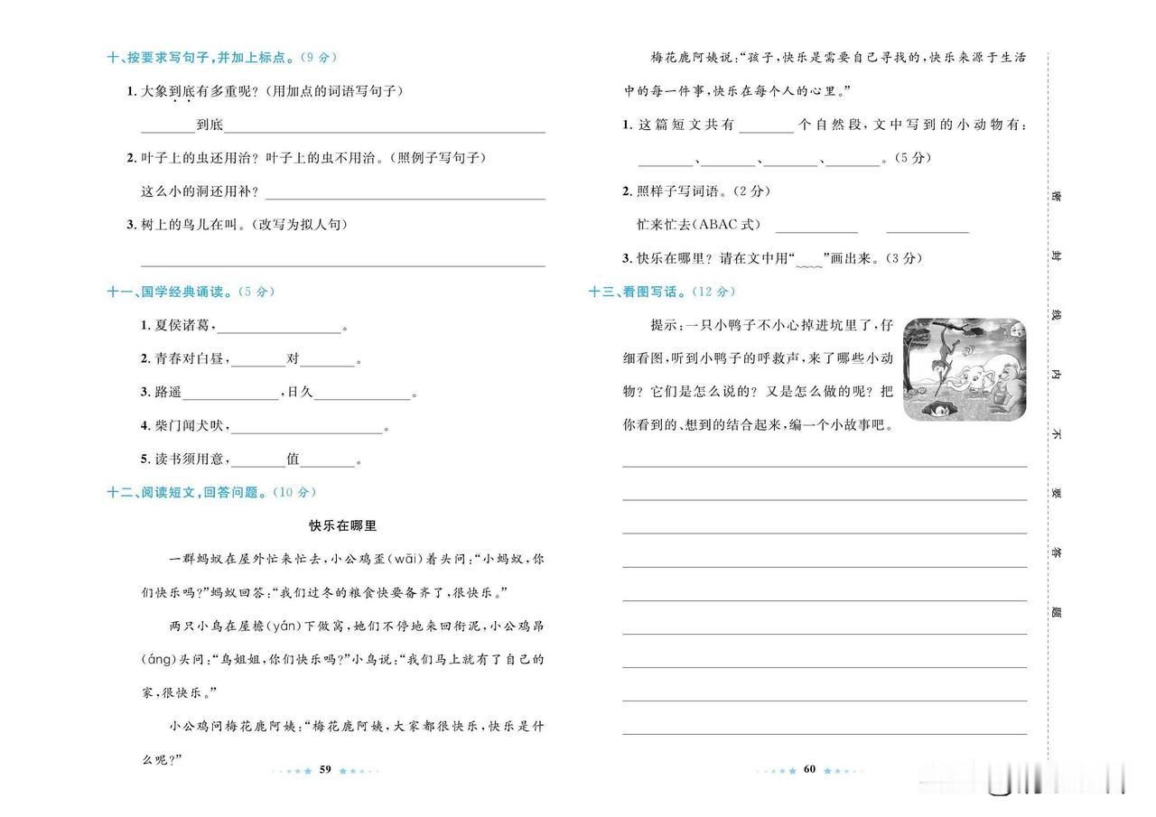 2024秋统编版语文二年级上册期末真题测试卷(五)