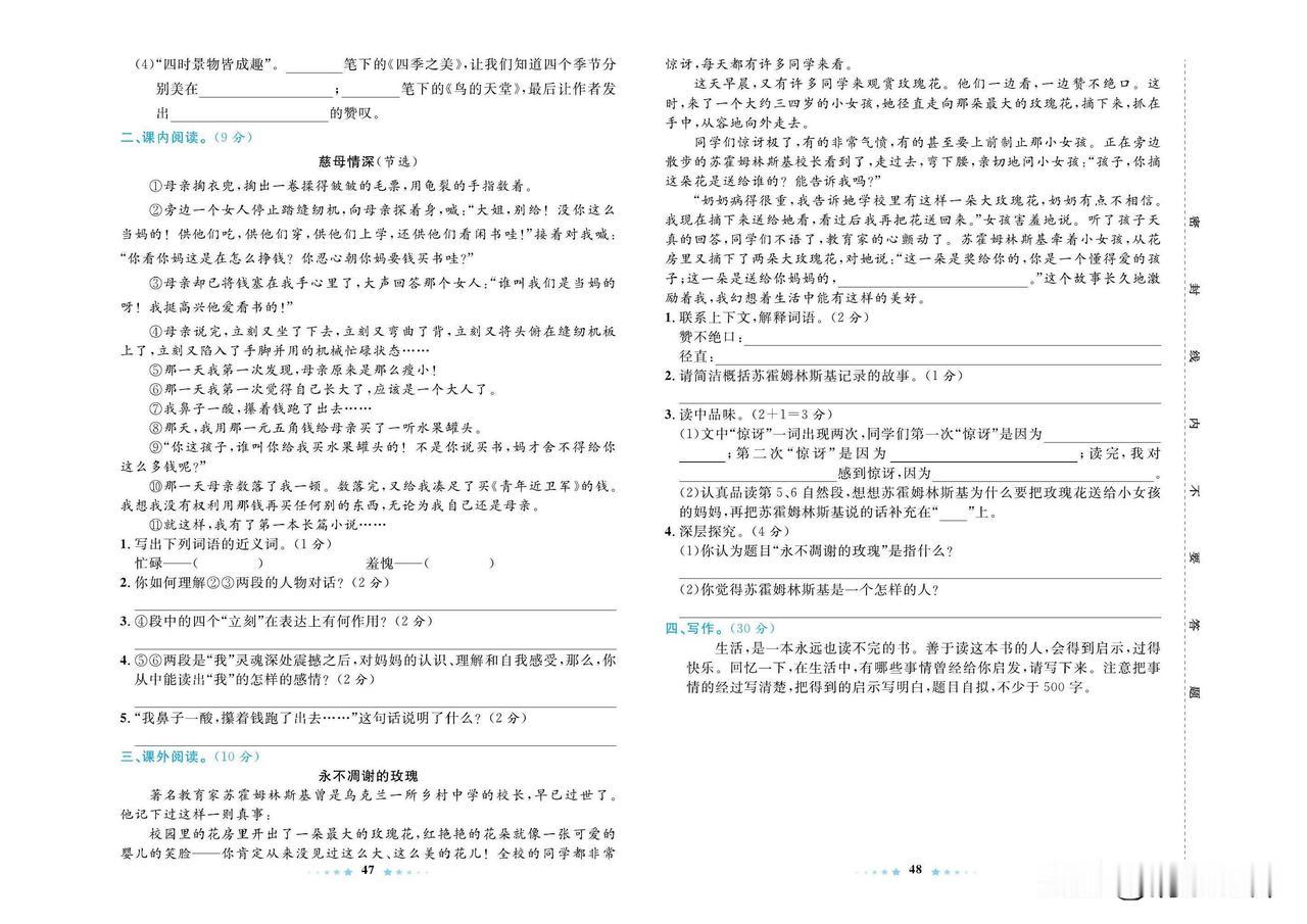 2024秋统编版语文五年级上册期末真题测试卷(二)