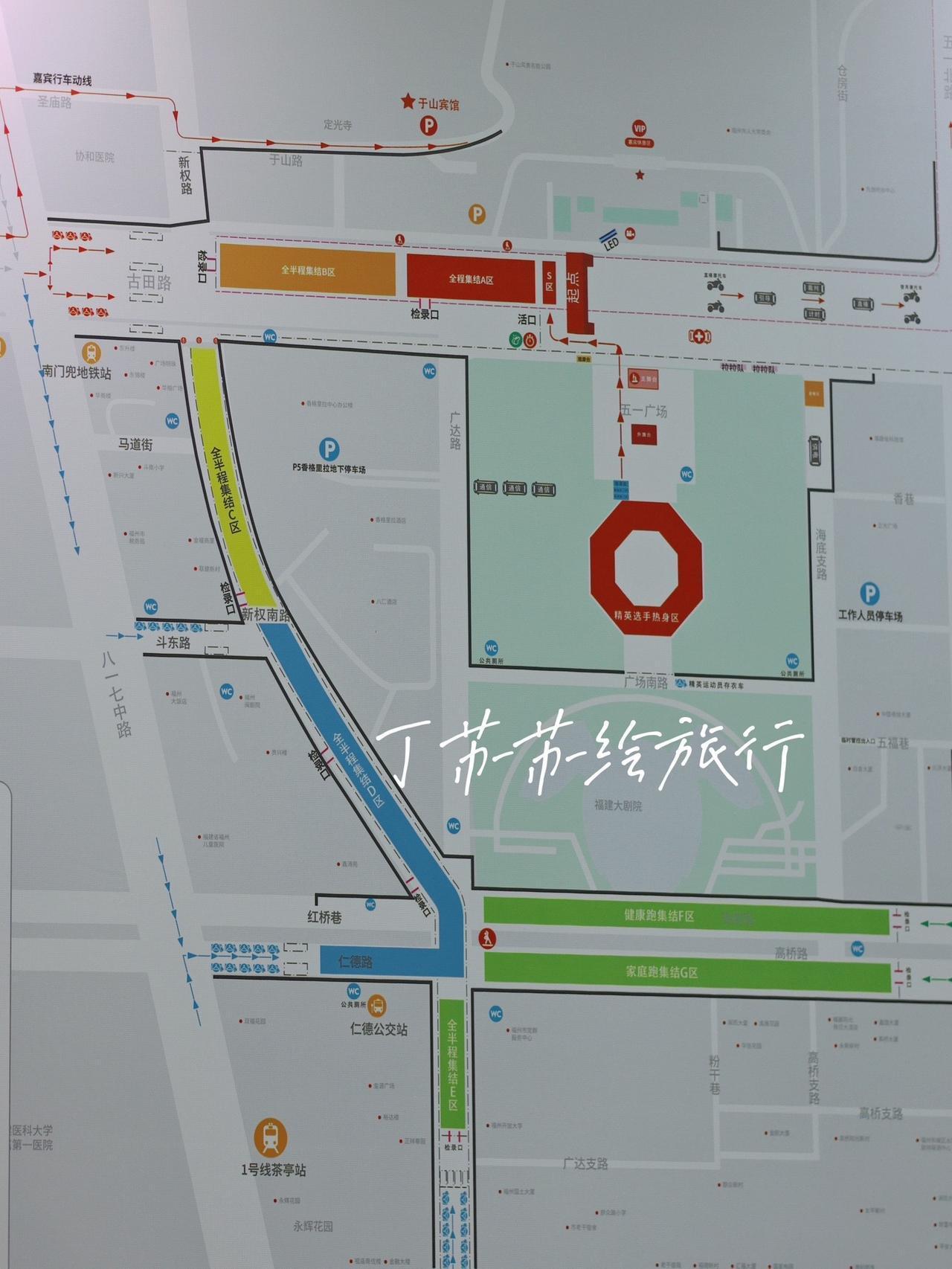 高高兴兴领物资,平平安安跑完赛。 福马的细心让我讲给你听~ 1️⃣交通🚉 4号线地铁🚇海峡会展站C口下走150米; 2、177、175、136公交车终点站🚌会展西站就在对面4 🚗自驾停车场🅿️充足 这也是比赛的终点🏁,交通疏散四通八达✋ 2️⃣份量怎么这么重👍 喜欢汤汤水水的福州,在你的参赛物资包里塞满了水和茶🍵、雨衣 要说的是,以前参赛绳包小,外套🧥塞不进去。 现在的巨大的透明的衣物包,一方面,冬季寄存🛅厚外套羽绒服也很好塞进去,透明起来一眼就能找到自己的衣服,提高了物资取走的效率,解决完赛的动线避免堵车了。 3️⃣密集的志愿者✌️ 领物资的志愿者不再只有年轻人,还有福州口音的依姐依哥在场馆各处指路,像了婚礼的登记🧧位,抢着让你拿好衣服、引导你下一步怎么走推进动线。 🫰感谢志愿者展现了福州这座城市的,非常热闹热情的老福气味,跑好了马🐎好在福州旅游吃吃吃! 4️⃣进出口分流、领物资的选手和观众区分通道安检🛂陪同的游客也可以进。 5️⃣领物资步骤: 签署✍️生成编号 领物资包、盖章 领参赛服、盖章 领号码牌 能亮胶盐丸、盖章 核对检测号码牌芯片 出场 完成后✔️随便逛逛场馆展位,拍照打卡📷 🧱场外有参赛选手的名字墙 💃全程红色、半程蓝色,衣服与路线、区域匹配,很好通过色块区分,附图路线。 起点方阵根据号码牌的英文分区,附图,我就不详细阐述啦。 图1️⃣2️⃣领物资步骤 图7️⃣比赛起点攻略图 图9 物资 福州马拉松 福州马拉松领物 内容启发搜索 马拉松