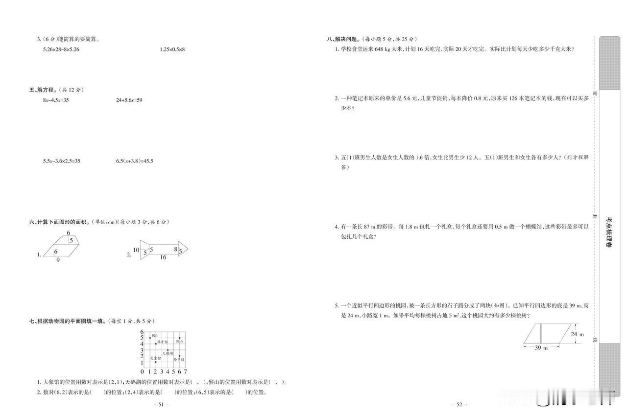 2024秋人教版数学五年级上册期末达标检测卷(二)