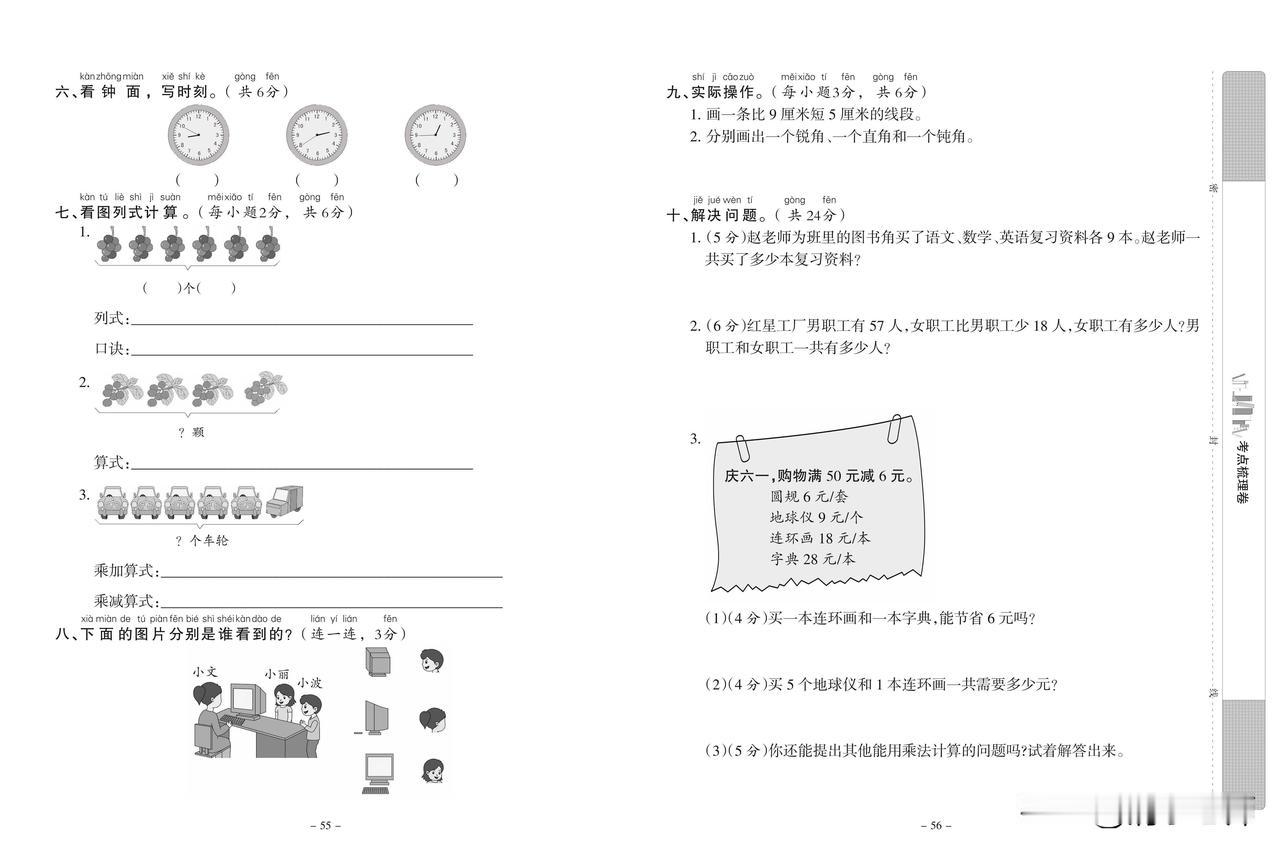 2024秋人教版数学二年级上册期末达标检测卷(二)