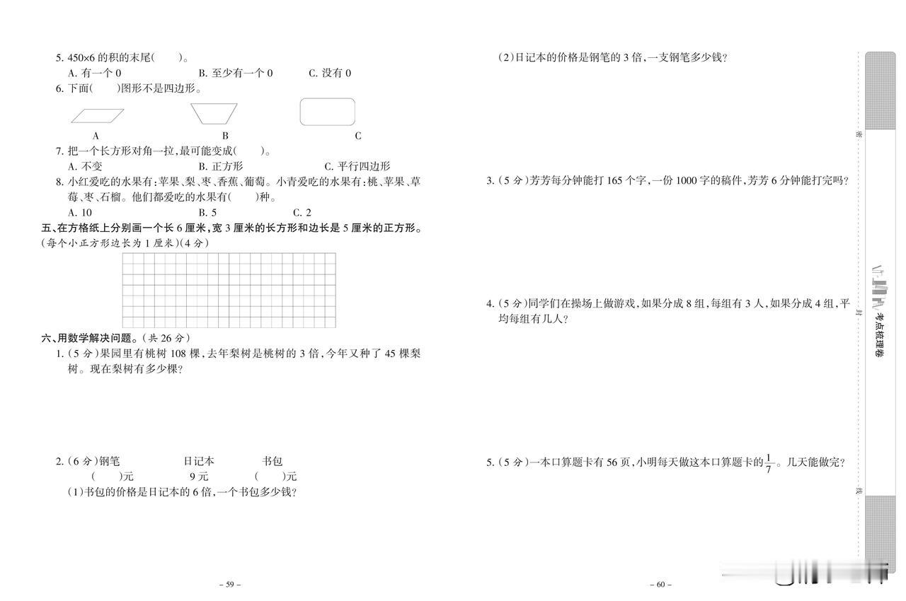 2024秋人教版数学三年级上册期末达标检测卷(二)