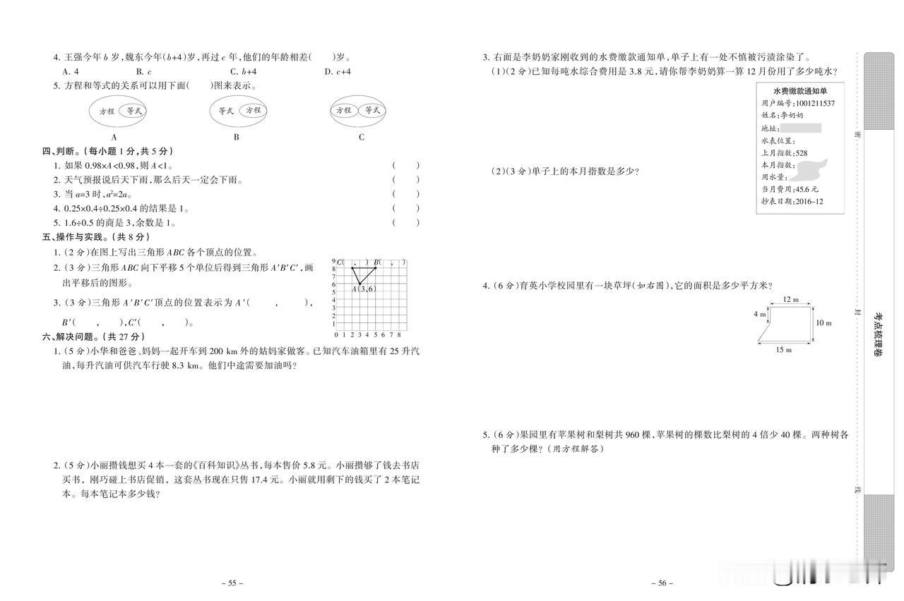 2024秋人教版数学五年级上册期末达标检测卷(三)