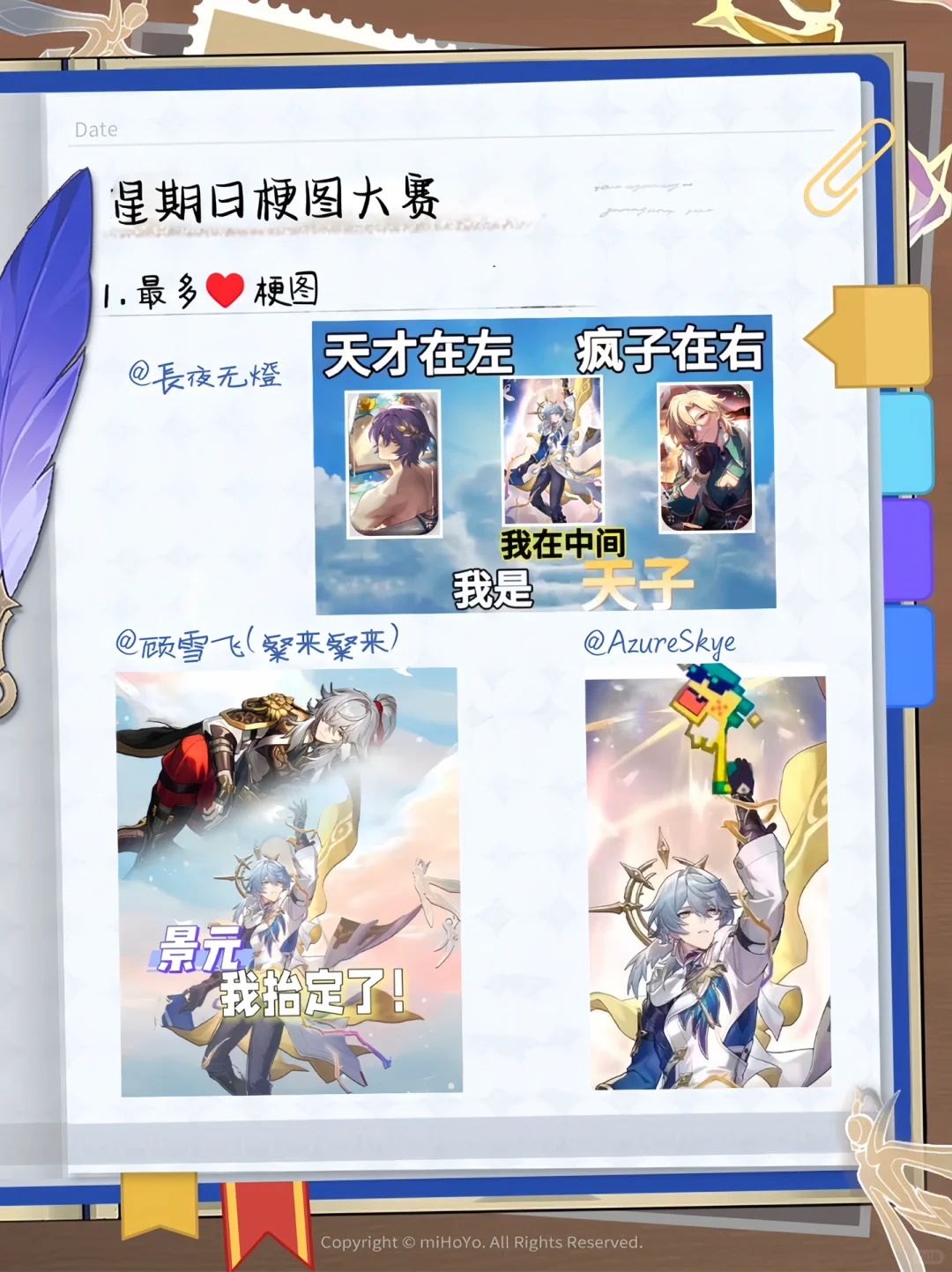 ⚠️特殊说明: 星期日梗图无法追溯参赛图的原创作者是谁,故仅以参赛者为最终获奖对象。 虽然我们尊重原创作者的劳动成果,但本活动旨在赞美星期日,博大家一乐,奖品也只是吧唧,希望大家理解,就不要过于苛刻了哈~ ⚠️另外,10w粉活动的幸运儿,请于我💌后的7个工作日内那个我,逾期视为弃权。