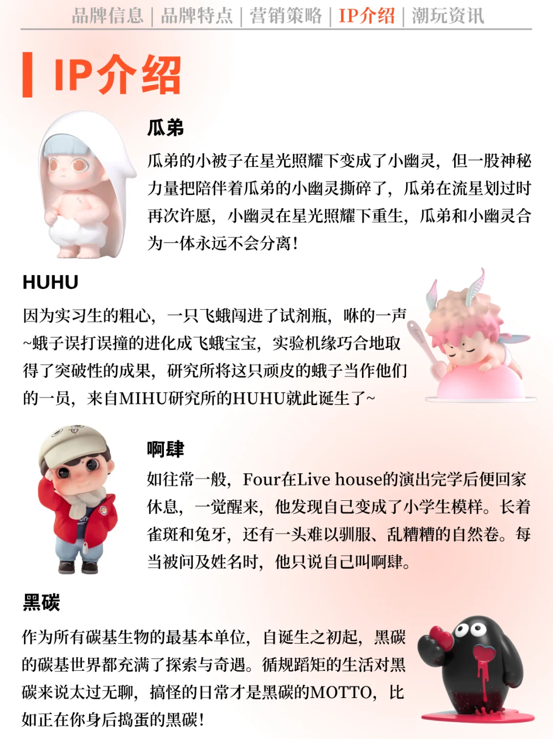 [火R] IP矩阵:黑玩已形成丰富的IP矩阵,成功孵化出了哦崽、MIMI、HUHU、瓜弟、派派熊、芙芙荞荞、OONA、啊肆、黑碳、蒙特等多个备受潮玩圈喜爱的 IP 形象。其中MIHU包含MIMI和HUHU两个IP。