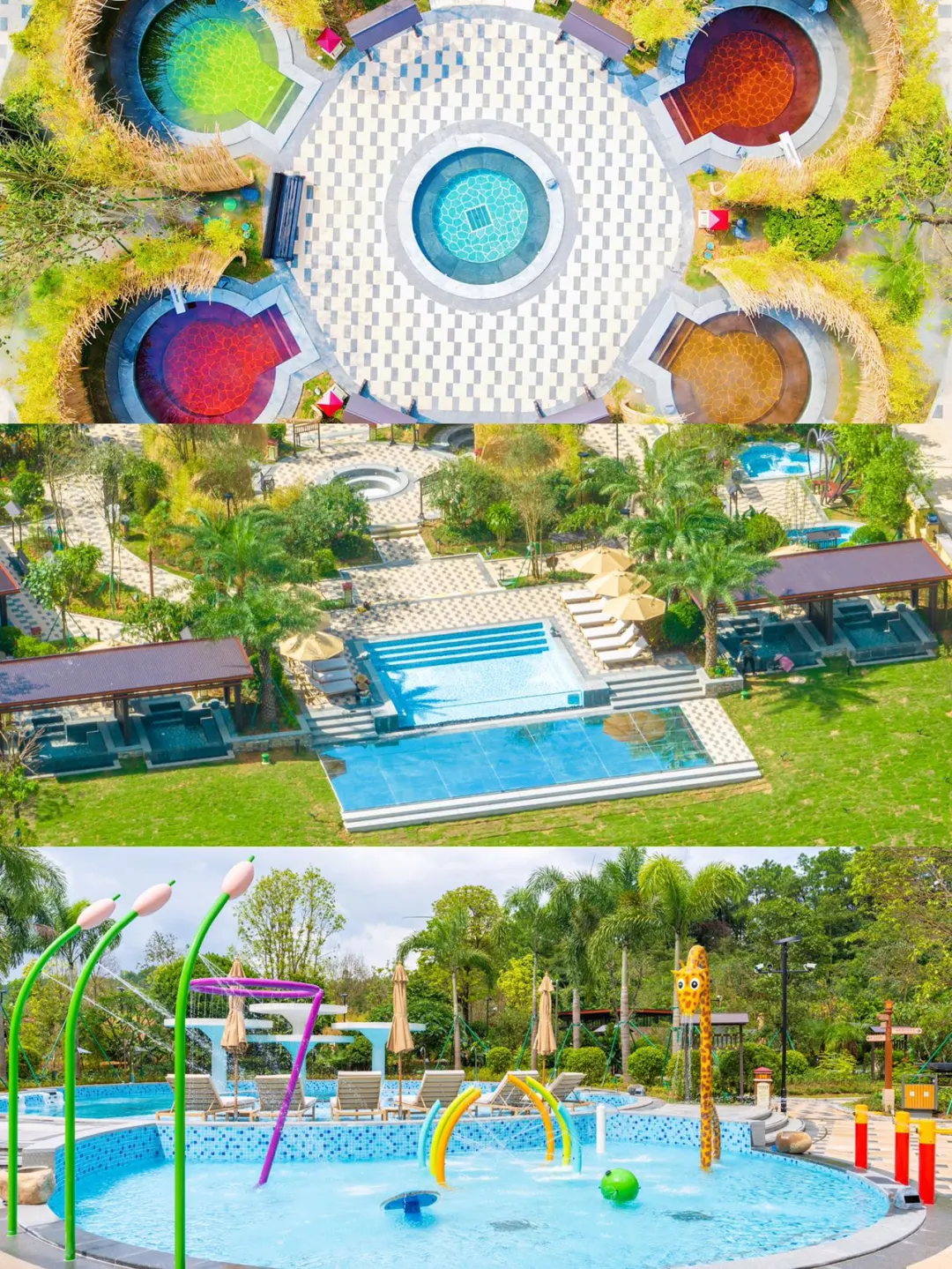 酒店内的森林温泉谷有5⃣️大温泉主题,30多款公共温泉池都有着它们不同的功效,公共温泉都被绿荫植被🌳环绕着,环境非常好,让人身处于大自然,养生养颜的同时又能吸收新鲜的空气✨氧气十足~而且还能体验干湿汗蒸房哦,温泉和它是蕞搭配的搭档啦,泡完温泉之后蒸上一蒸,全身心的压力在这一刻都能得到了解放~酒店内还有爱心💗漩涡池、天空之境等拍照打卡点哦,蓝天白云☁️倒映在玻璃上,形成了酒店别具一格的景色~