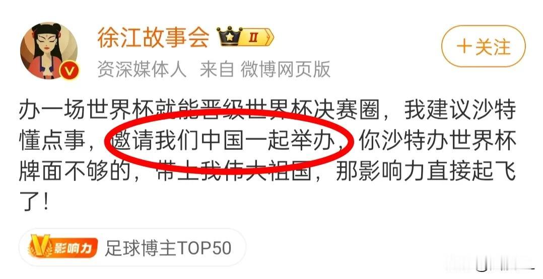 国足再次圆梦世界杯,这还真是一个好办法。中国足协可以找沙特争取一下双方合作,共同举办2030世界杯,每个国家承担一半小组赛,最关键的决赛哪怕放在沙特举办。这样一来,国足便可以名正言顺的晋级世界杯了。 就凭中国庞大的球迷市场,国际足联应该没啥意见吧?
