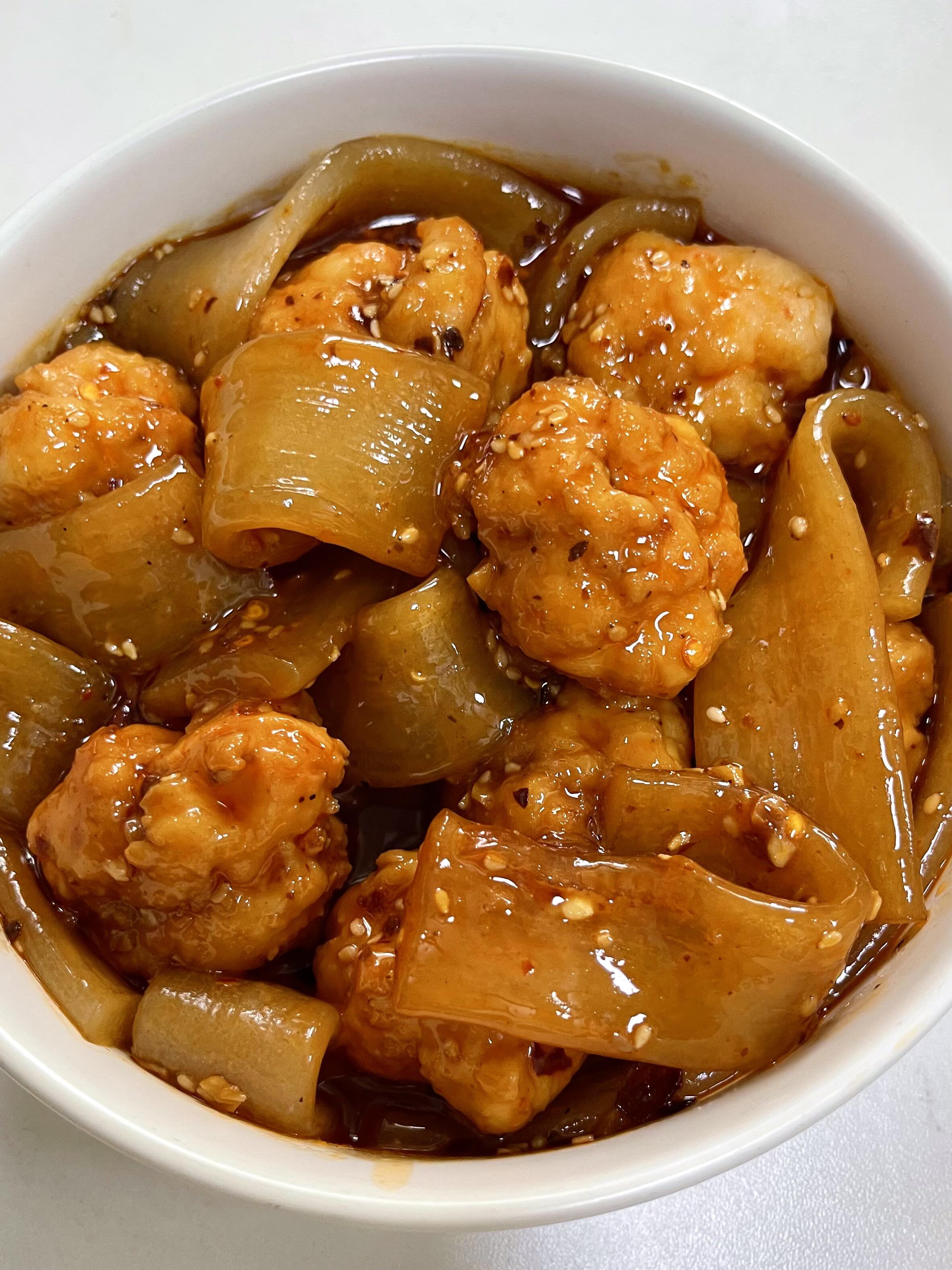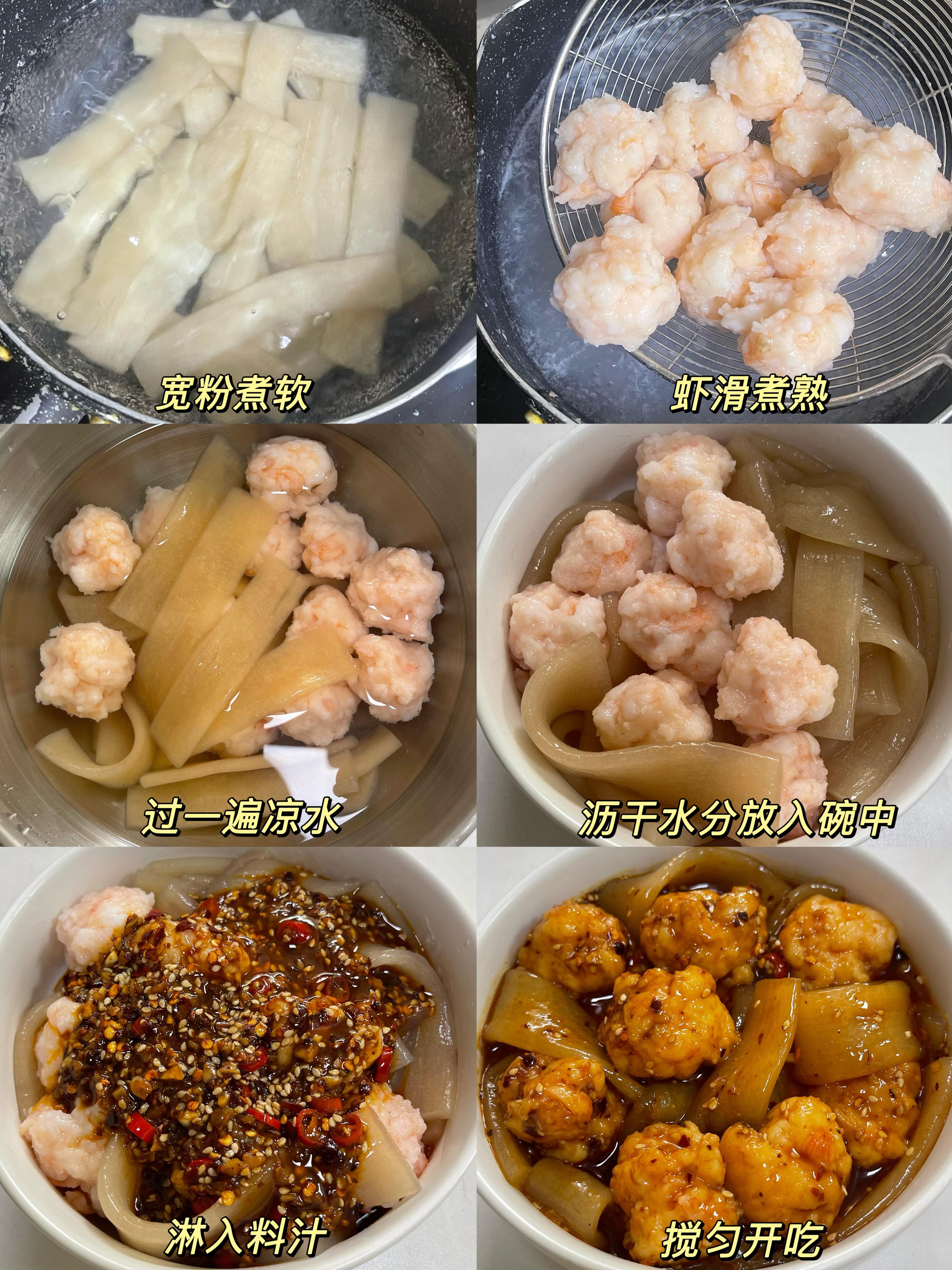 Step 4:拌在一起——“虾滑+宽粉+酱汁”,拌匀开吃!