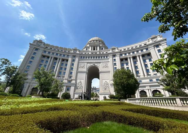 走到眼前,才知道它叫鑫中联大厦。整栋建筑铺着米白色的石材,圆顶上是成片的金属瓦,罗马柱和雕花细节也没缺席。楼前舒展着几万平方米的草坪,绿得晃眼,周末挤满了放风筝、野餐的人。孩子们追跑笑闹,背后衬着那栋安静的欧式大楼,画面有种说不出的趣味。