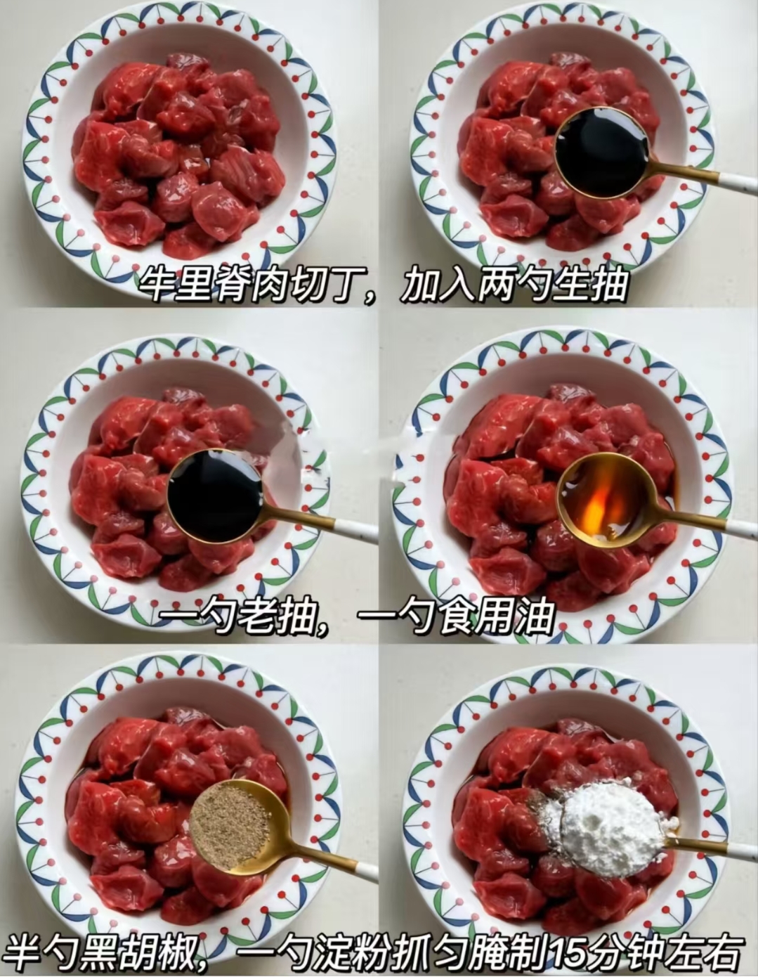 想要做出一道色泽红亮、口感嫩滑的菠萝咕咾肉,食材的选择与预处理是关键的第一步。准备一块新鲜的牛里脊肉,这可是口感嫩滑的保证,将其切成大小均匀的可爱小丁,不仅是为了让肉肉更容易入味,更是为了烹饪时受热均匀。切好的肉丁放入碗中,便开启了“注入灵魂”的腌制之旅。先来两勺生抽提鲜,那是美味的基底;再加一勺老抽,瞬间让肉丁穿上诱人的“棕红衣”,颜值立马upup。紧接着,倒入一勺食用油,这就像是给牛肉做了一次深层的“保湿护理”,牢牢锁住水分,保证炒出来的口感嫩滑不柴。最后,撒上半勺黑胡椒增添香气,再来一勺淀粉充分抓匀,静静腌制15分钟左右,让每一粒牛肉都在时间的沉淀中完成美味“变身”。