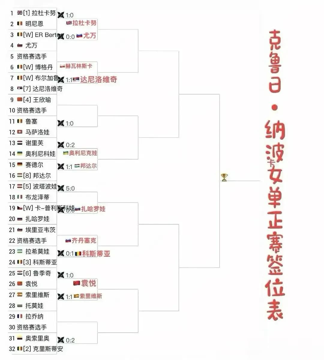 次轮1/8决赛最新赛程、战报⬇️⬇️1、18:30,✅中国袁悦vs西班牙索里维斯·托尔莫;